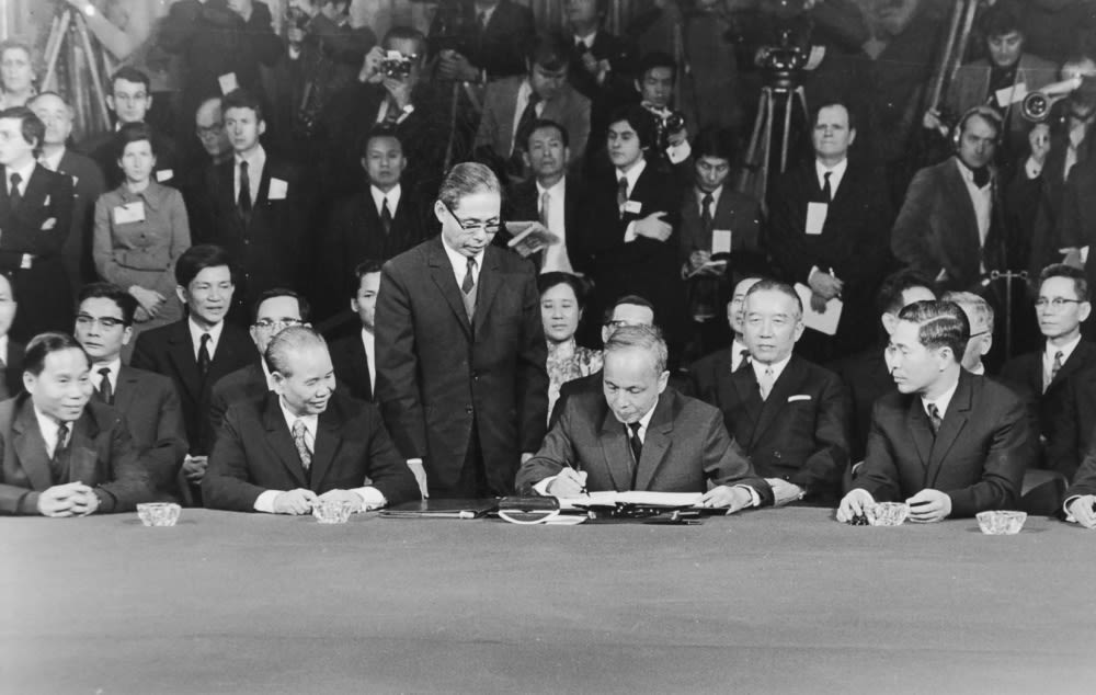 Signature des accords de Paris sur le Vietnam, le 27 janvier 1973, par Nguyên Duy Trinh. Photo : VNA.
