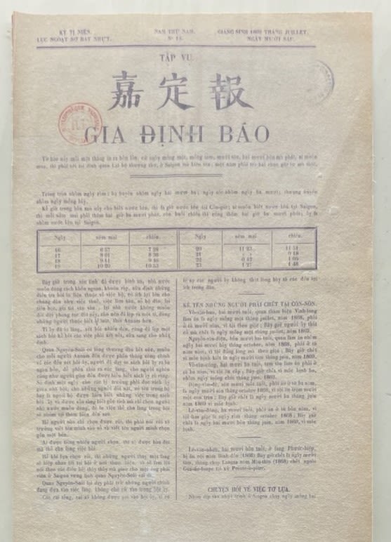 Đây là tờ báo đầu tiên xuất bản bằng chữ quốc ngữ, phát hành tại Nam Kỳ, số đầu tiên ra ngày 15/4/1865, với khổ 25x32cm, 4 trang, mỗi tháng một số. Sự ra đời của Gia Định báo đã mở ra một kỷ nguyên mới - kỷ nguyên chữ quốc ngữ lan tỏa trong đời sống người dân, và đặt nền móng cho văn hóa báo chí Việt Nam hiện đại.