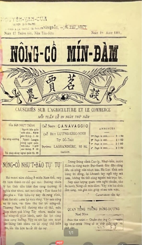 Thời điểm này, xuất hiện tờ "Nông cổ Mín Đàm" được xem là tờ báo kinh tế đầu tiên của Nam Kỳ, ra mắt số đầu tiên vào ngày 1/8/1901. Tiêu chí của báo là "Uống trà nói chuyện nông nghiệp và thương mại". Tờ báo xuất bản hàng tuần, duy trì 115 số với dung lượng từ 8 đến 12 trang. Nhiều danh sĩ tên tuổi đã lần lượt giữ vai trò chủ bút sau Lương Khắc Ninh, có thể kể đến Gilbert Chiếu (Trần Chánh Chiếu), Nguyễn Đồng Trụ, Lê Văn Trung và Nguyễn Chánh Sắt.