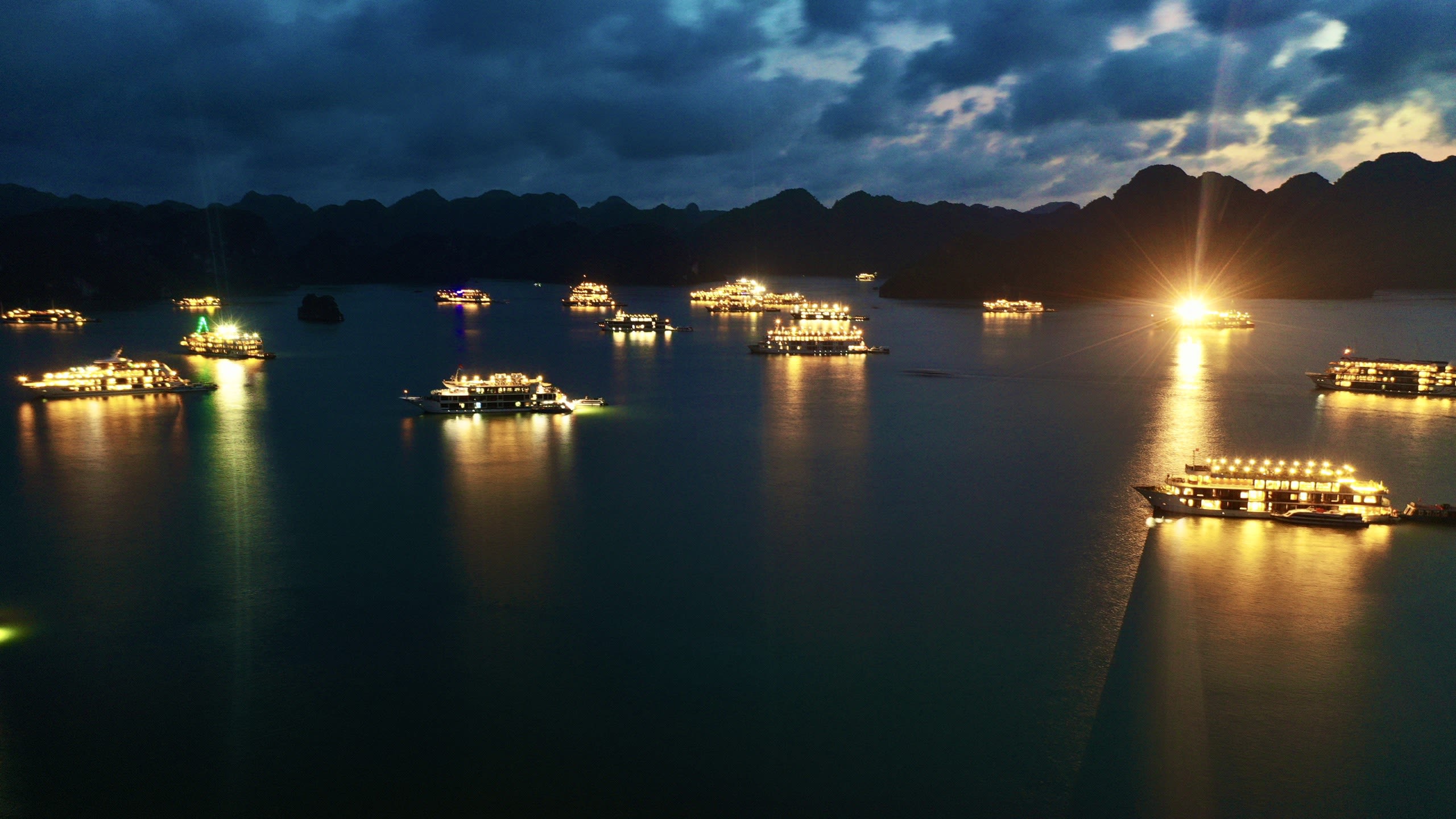 Ночная бухта Халонг. Фото: baoquangninh.vn