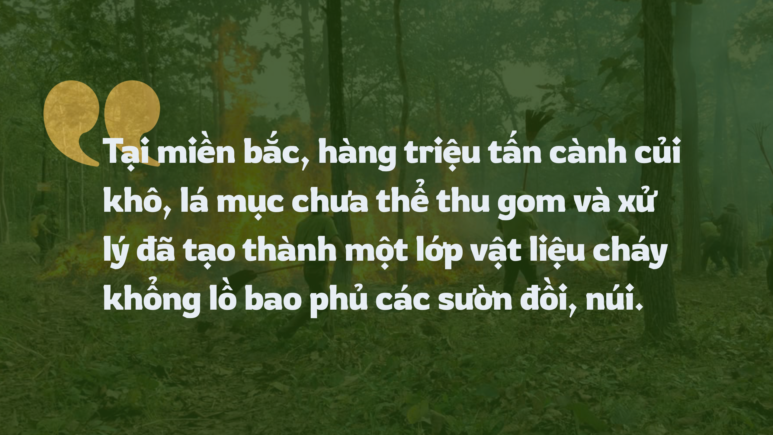 Đặc biệt tại miền bắc, chúng ta còn một nỗi lo hiện hữu: Cơn bão Yagi năm 2024 đã để lại “di chứng” nặng nề khi làm thiệt hại hoàn toàn gần 129.000 ha rừng. Hàng triệu tấn cành củi khô, lá mục chưa thể thu gom và xử lý đã tạo thành một lớp vật liệu cháy khổng lồ bao phủ các sườn đồi, núi. Chỉ cần một tàn lửa nhỏ từ việc sử dụng bất cẩn của con người trong khu vực rừng, cả một vùng rừng rộng lớn có thể biến thành biển lửa trong tích tắc.