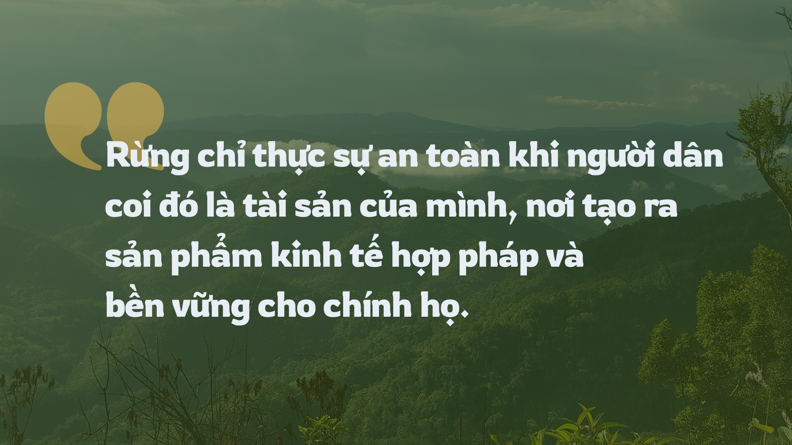 Đây là nút thắt quan trọng nhất. Rừng chỉ thực sự an toàn khi người dân coi đó là tài sản của mình, nơi tạo ra sản phẩm kinh tế hợp pháp và bền vững cho chính họ. Chúng tôi đang đẩy mạnh các chương trình giao khoán bảo vệ rừng gắn với phát triển du lịch sinh thái và kinh tế dưới tán rừng.