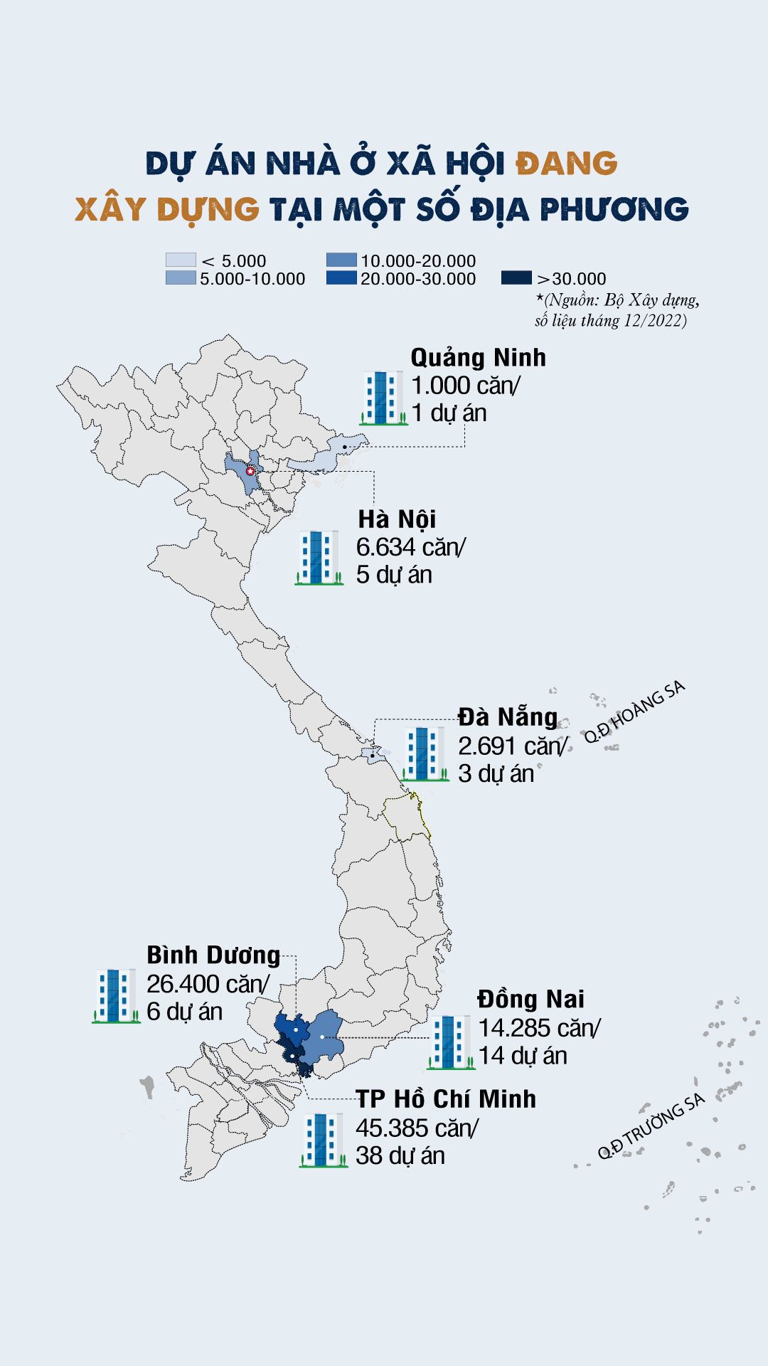 Đồng thời, trên cơ sở xác định nhu cầu về nhà ở xã hội dành cho người thu nhập thấp, công nhân khu công nghiệp của các địa phương, Bộ Xây dựng đã nghiên cứu xây dựng Đề án và xây dựng mục tiêu cụ thể cho từng địa phương đến năm 2030 hoàn thành khoảng 1.416.700 căn (trong đó, giai đoạn 2021-2025 hoàn thành khoảng 571.200 căn; giai đoạn 2025-2030 hoàn thành khoảng 845.500 căn).