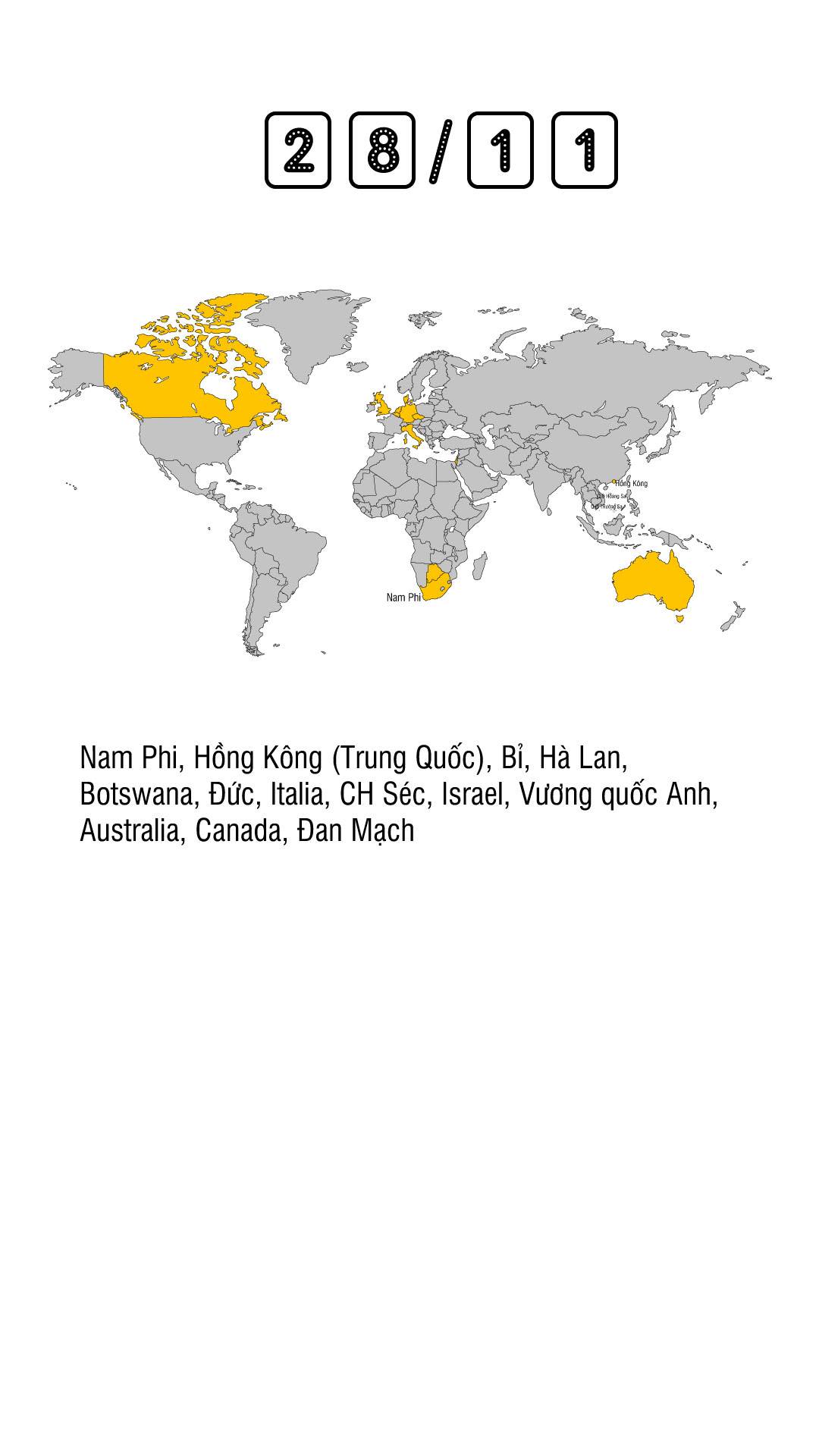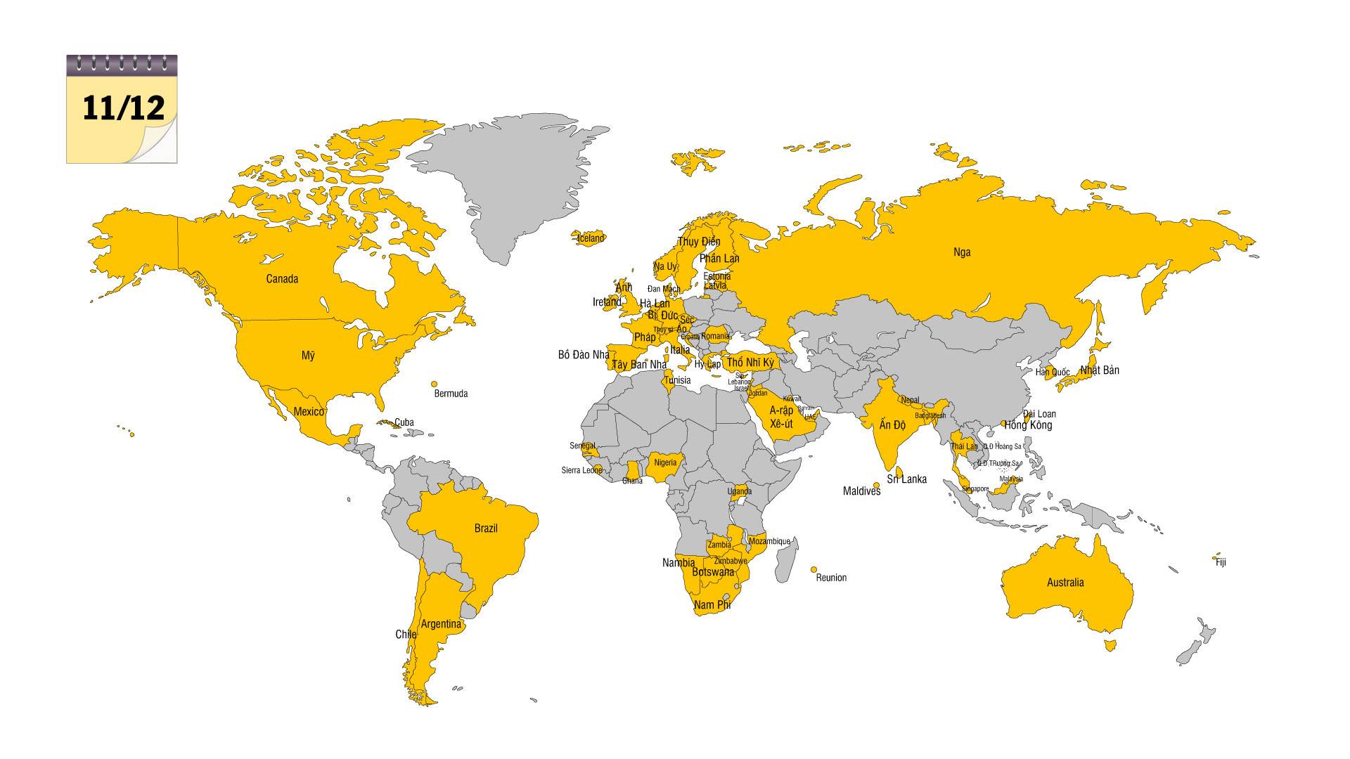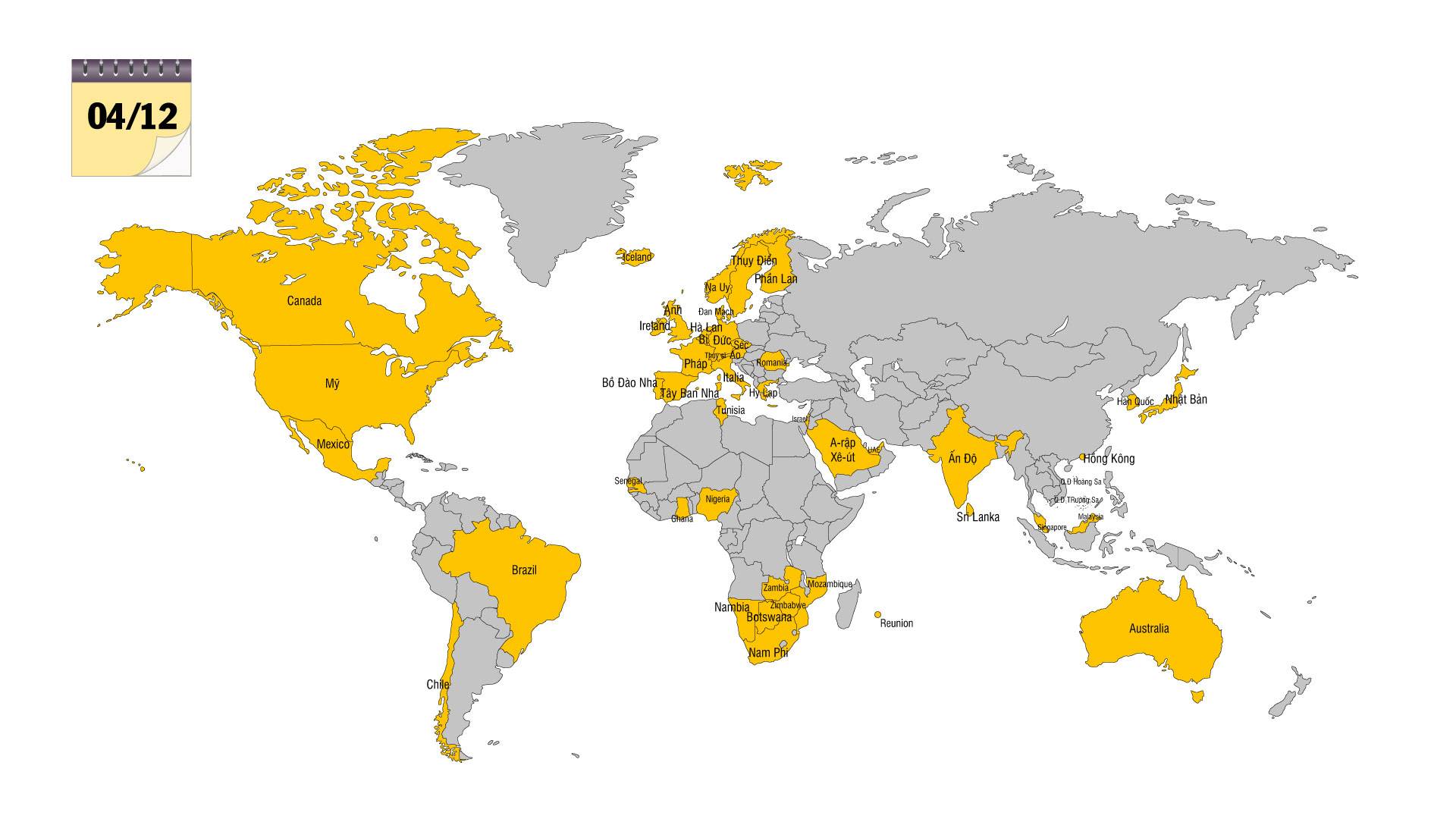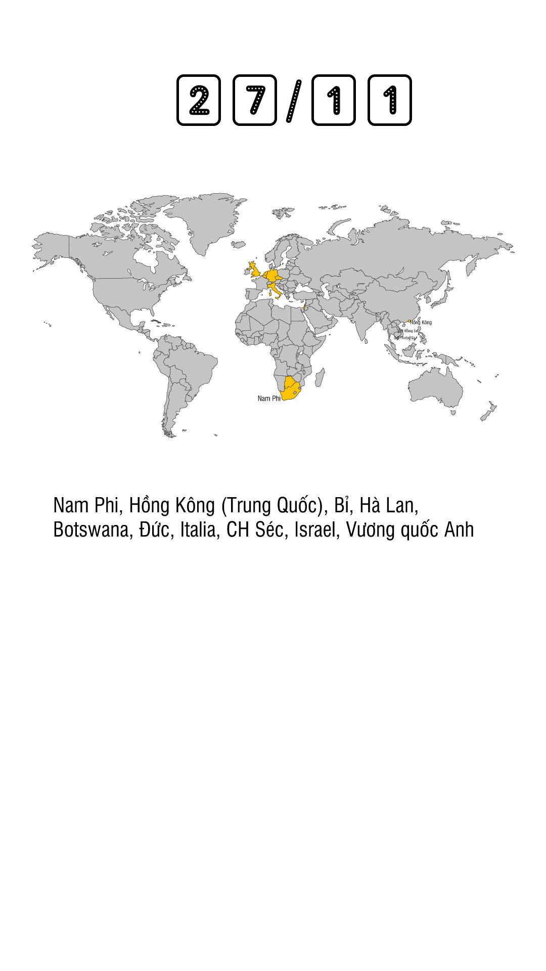 Cụ thể, các quốc gia và vùng lãnh thổ ghi nhận các ca mắc biến thể Omicron gồm: Nam Phi, Hồng Kông (Trung Quốc), Bỉ, Hà Lan, Botswana, Đức, Italia, CH Séc, Israel, Vương quốc Anh, Australia, Canada, Đan Mạch, Bồ Đào Nha, Ireland, Tây Ban Nha, Thụy Điển, Áo, Thụy Sĩ, Reunion (Pháp), Nhật Bản, Brazil, Mozambique,