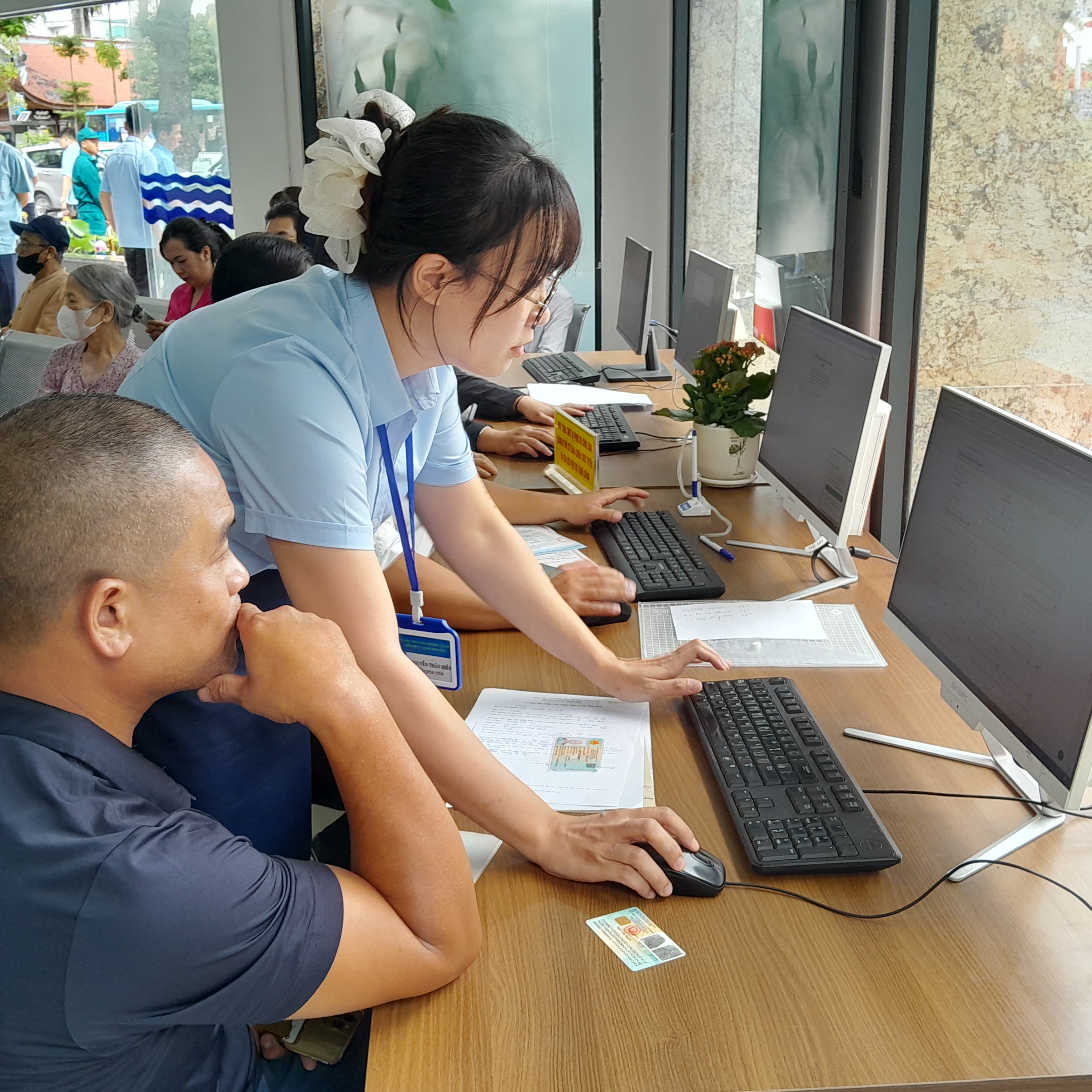 Cán bộ điểm phục vụ hành chính công phường Tây Hồ hướng dẫn người dân thực hiện thủ tục hành chính trên môi trường mạng.