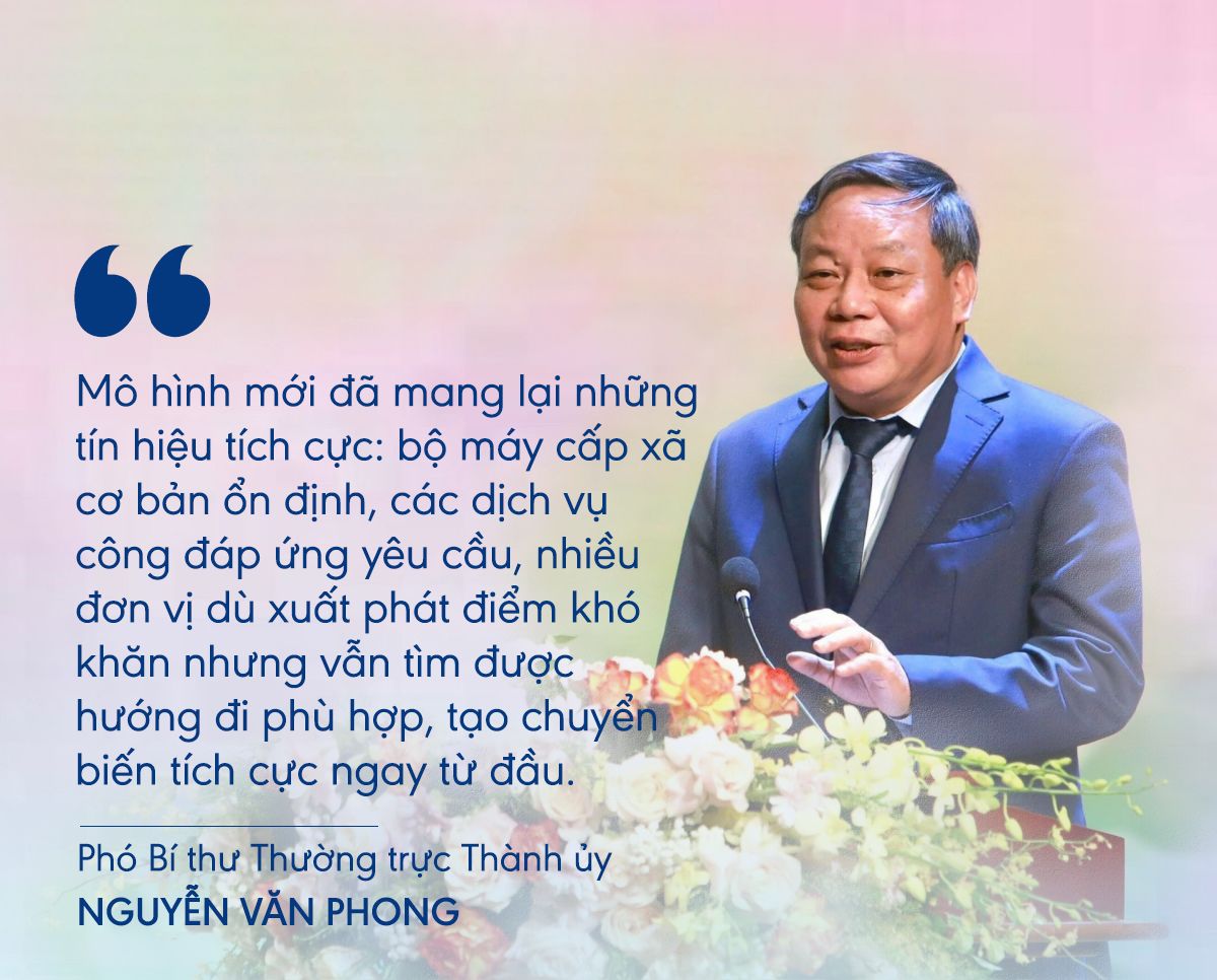 Phó Bí thư Thường trực Thành ủy Nguyễn Văn Phong đánh giá, mô hình mới đã mang lại những tín hiệu tích cực: bộ máy cấp xã cơ bản ổn định, các dịch vụ công đáp ứng yêu cầu, nhiều đơn vị dù xuất phát điểm khó khăn nhưng vẫn tìm được hướng đi phù hợp, tạo chuyển biến tích cực ngay từ đầu.