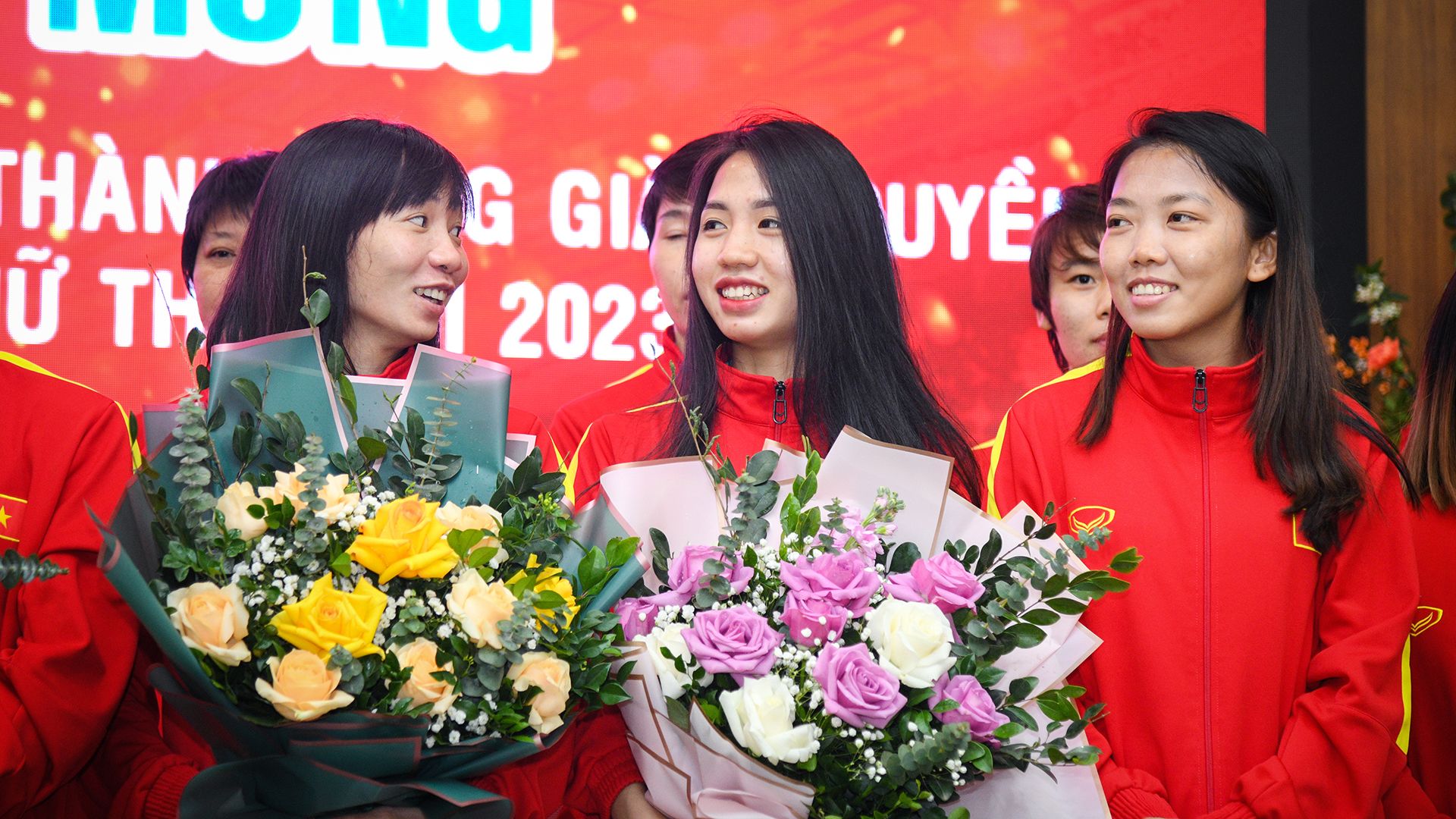 Đón những cô gái “kim cương” về nước sau chiến tích lịch sử. Nguồn: VFF