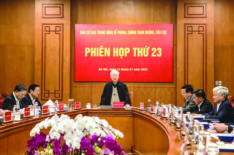 Tổng Bí thư Nguyễn Phú Trọng phát biểu kết luận tại Phiên họp thứ 23 của Ban Chỉ đạo Trung ương về phòng, chống tham nhũng, tiêu cực, ngày 12/01/2023. (Ảnh: TTXVN)
