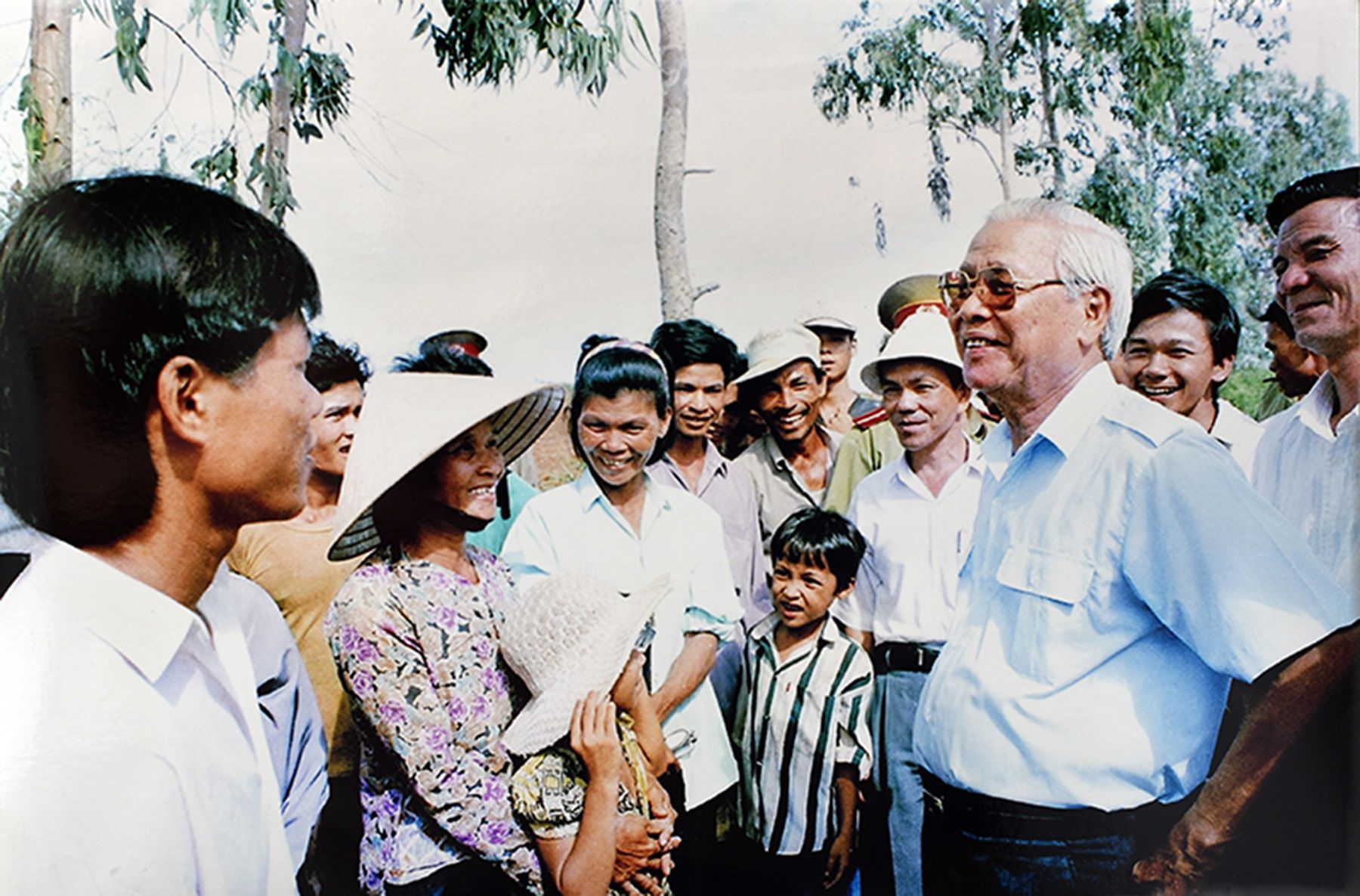 Nguyên Thủ tướng Võ Văn Kiệt trò chuyện thân mật với nhân dân vùng cát trắng Dung Quất. Ảnh: NGUYỄN ĐĂNG LÂM