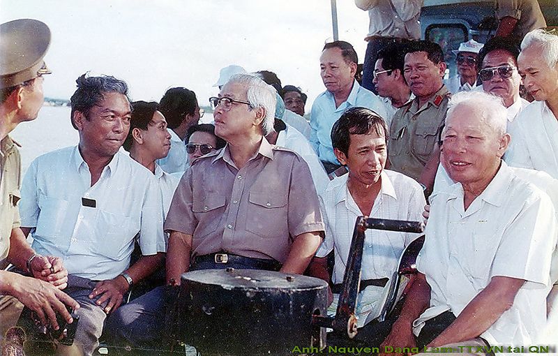 Nguyên Thủ tướng Võ Văn Kiệt thị sát vũng nước sâu Dung Quất (nay là cụm cảng Dung Quất). Ảnh: NGUYỄN ĐĂNG LÂM