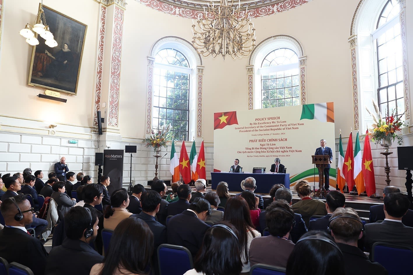 越共中央总书记、国家主席苏林在爱尔兰都柏林圣三一大学发表重要讲话。(图片来源:越通社)