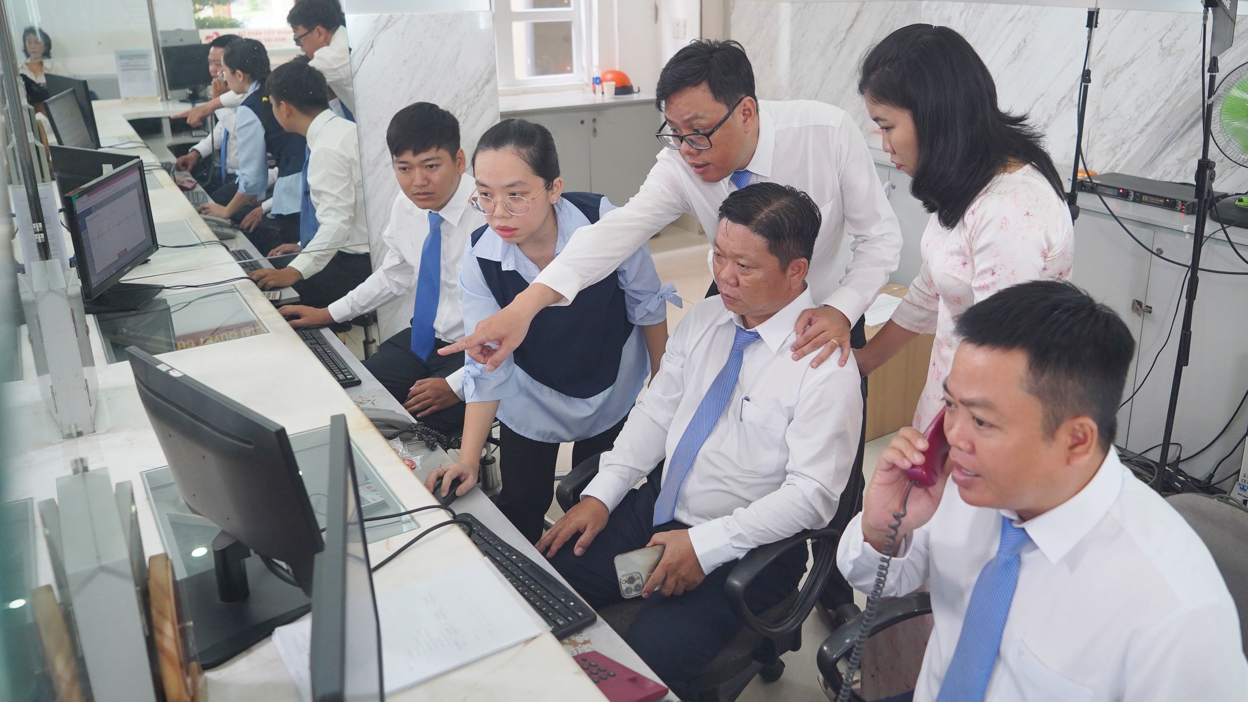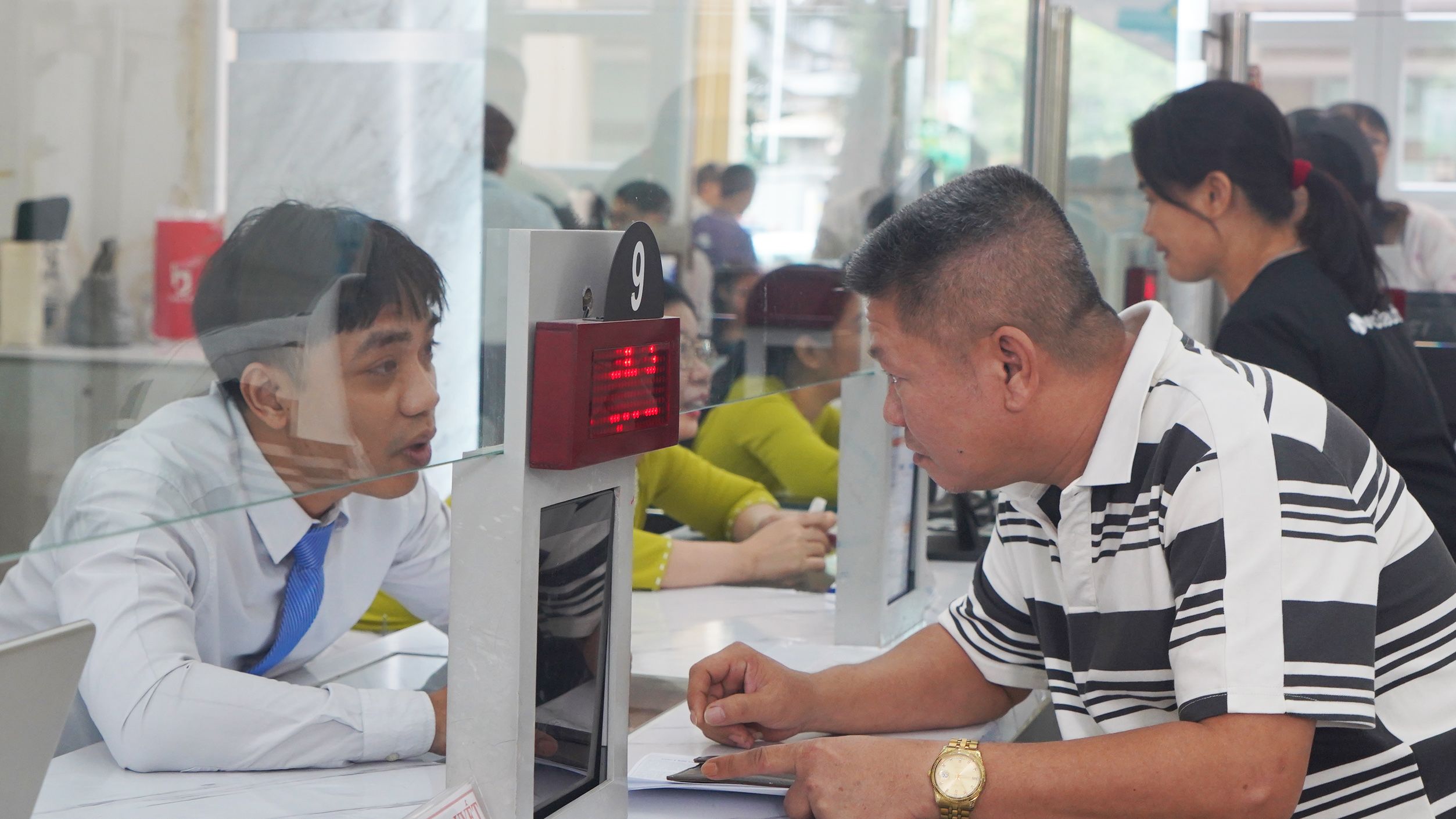 Người dân quét mã QR tại quầy giao dịch để đánh giá ngay lập tức về thái độ, chuyên môn và hiệu quả phục vụ