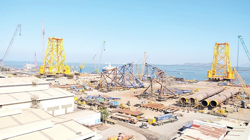 Công trường sản xuất trụ điện gió ngoài khơi của PTSC tại thành phố Vũng Tàu, tỉnh Bà Rịa-Vũng Tàu.