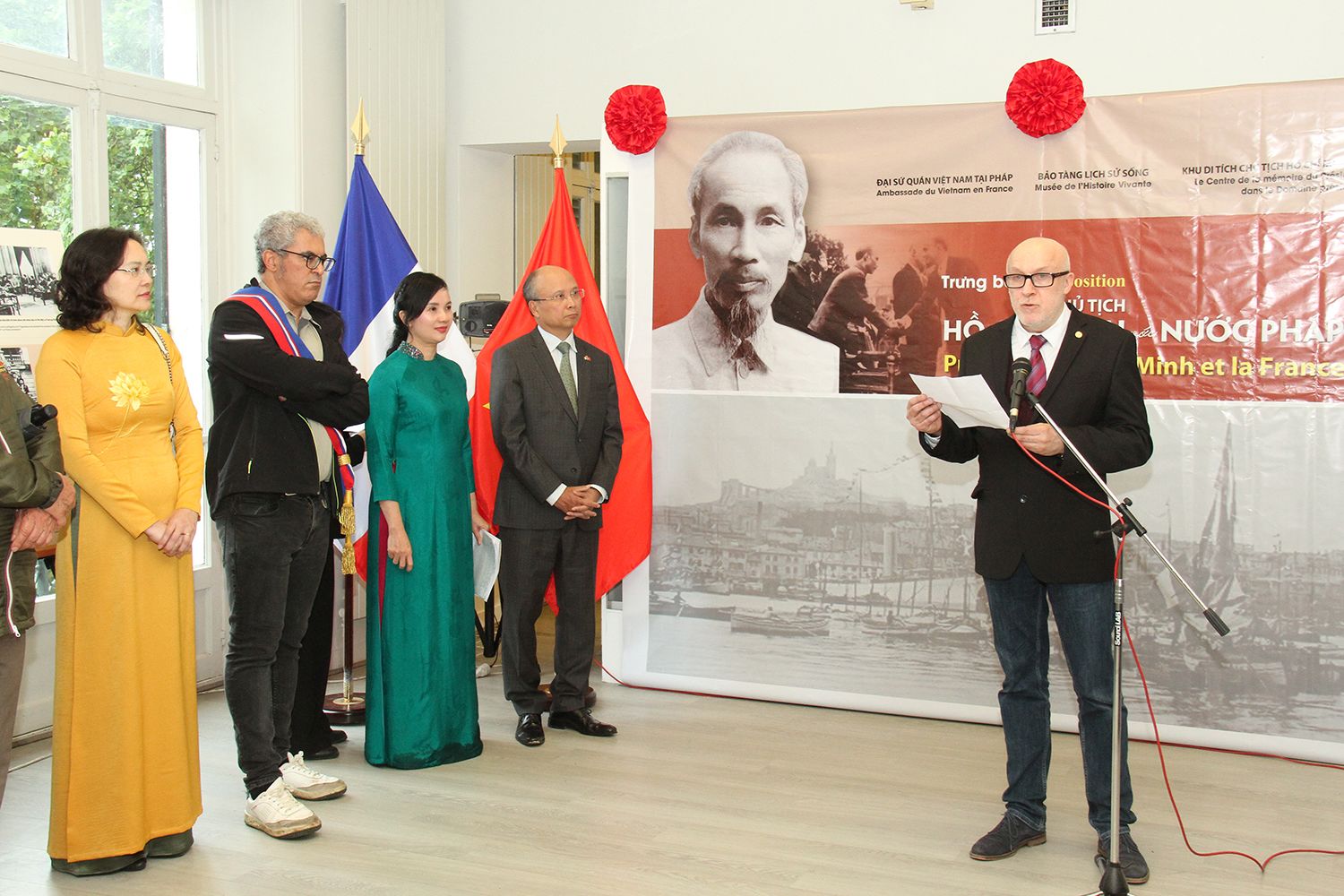 Ông Eric Lafon phát biểu tại triển lãm "Chủ tịch Hồ Chí Minh với nước Pháp", được tổ chức ở thành phố Montreuil, ngày 28/5/2024. (Ảnh: Khải Hoàn)