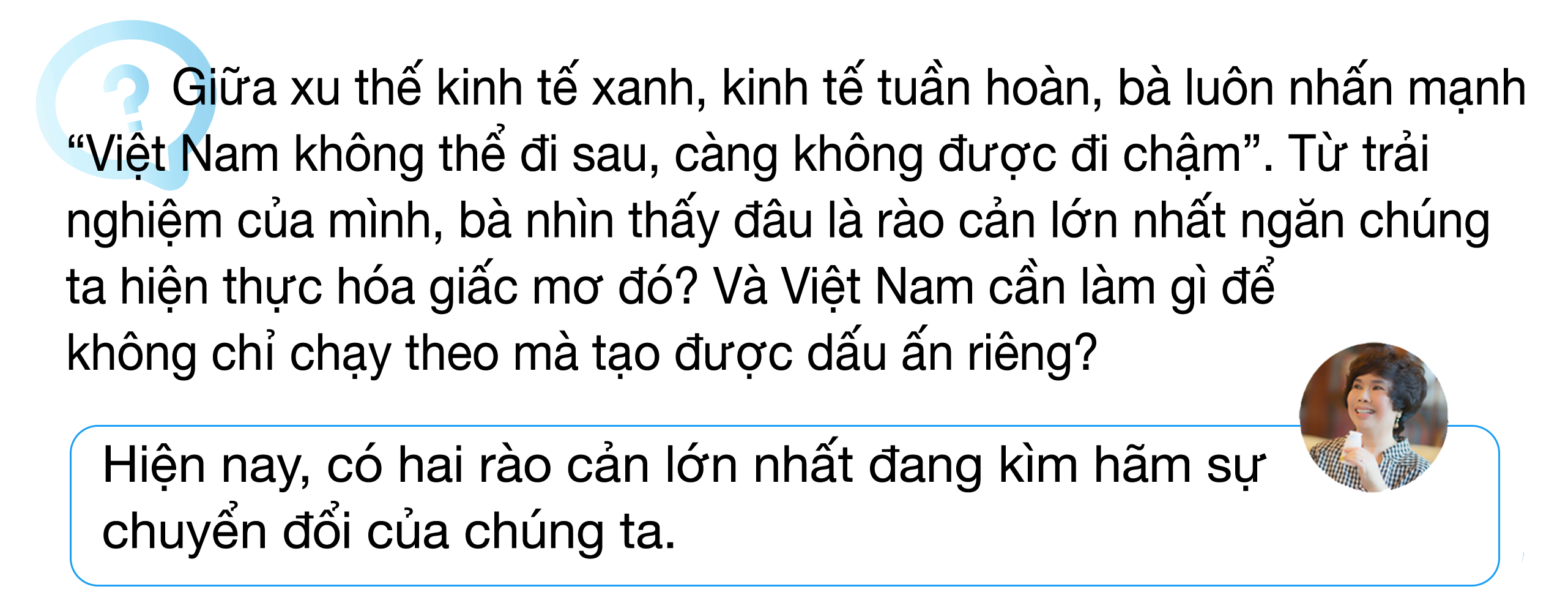 Trước hết, là rào cản về nhận thức. Nhiều doanh nghiệp vẫn chạy theo lợi nhuận ngắn hạn, chưa thấy hết lợi ích dài lâu của phát triển bền vững. Trong khi đó, thế giới đã chứng minh rằng kinh tế xanh không chỉ là trách nhiệm với môi trường, mà còn tạo ra lợi nhuận bền vững và vị thế cạnh tranh. Châu Âu đã áp dụng CBAM (Cơ chế điều chỉnh biên giới carbon), nếu doanh nghiệp Việt Nam không chuyển đổi, hàng hóa sẽ bị đánh thuế cao, mất thị trường xuất khẩu. Nhưng nếu đi trước, chúng ta sẽ có lợi thế lớn.