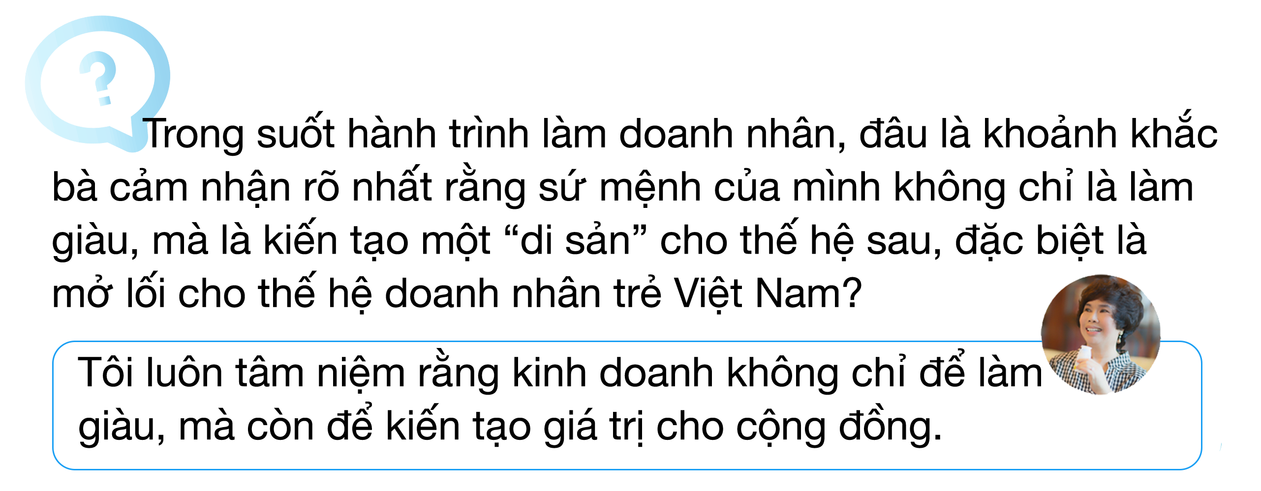 Hành trình này không chỉ là kinh doanh, mà còn là trách nhiệm. Tôi luôn tâm niệm: “Con người là chủ thể của xã hội, là nguồn lực quyết định sự phát triển đất nước. Sự phát triển thể lực, trí lực và tâm hồn của mỗi cá nhân là rất quan trọng. Một quốc gia chỉ vững mạnh khi con người được phát triển toàn diện cả thể lực và trí lực, trong đó yếu tố tiên quyết cho sự phát triển này không những là nguồn dinh dưỡng thiết yếu như lúa, gạo, thực phẩm và các sản phẩm sữa mà cần có một chế độ chăm sóc sức khỏe bền vững. Đầu tư vào phát triển thể lực và trí lực là phát triển nòi giống của dân tộc, là đầu tư vào phát triển bền vững mang tính chiến lược quốc gia”.