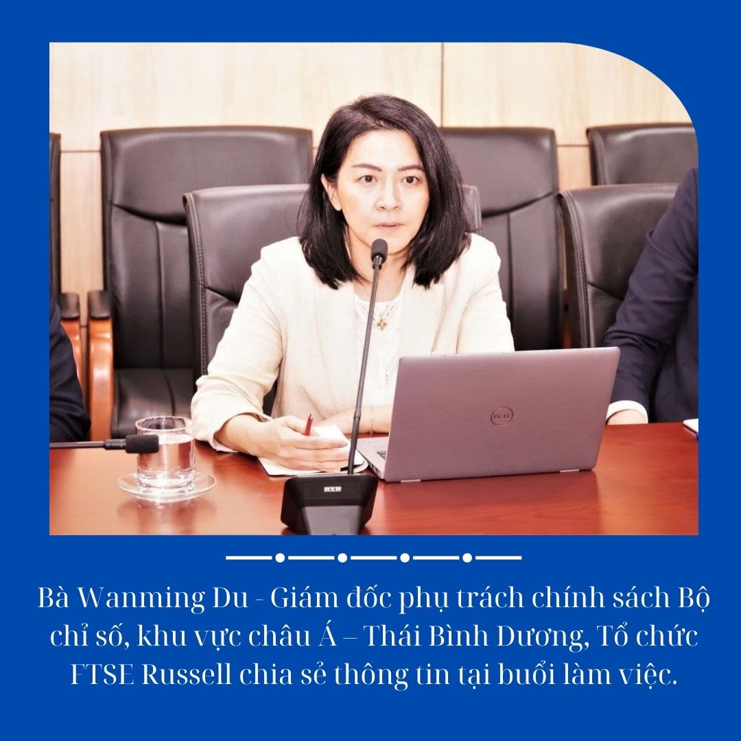 Trước đó, ngày 28/2/2025, tại trụ sở Ủy ban Chứng khoán Nhà nước, Chủ tịch Ủy ban Chứng khoán Nhà nước Vũ Thị Chân Phương đã chủ trì buổi làm việc với đại diện Tổ chức xếp hạng thị trường FTSE Russell nhằm cập nhật thông tin và những nỗ lực của cơ quan quản lý nhằm thúc đẩy tiến trình nâng hạng thị trường chứng khoán Việt Nam.