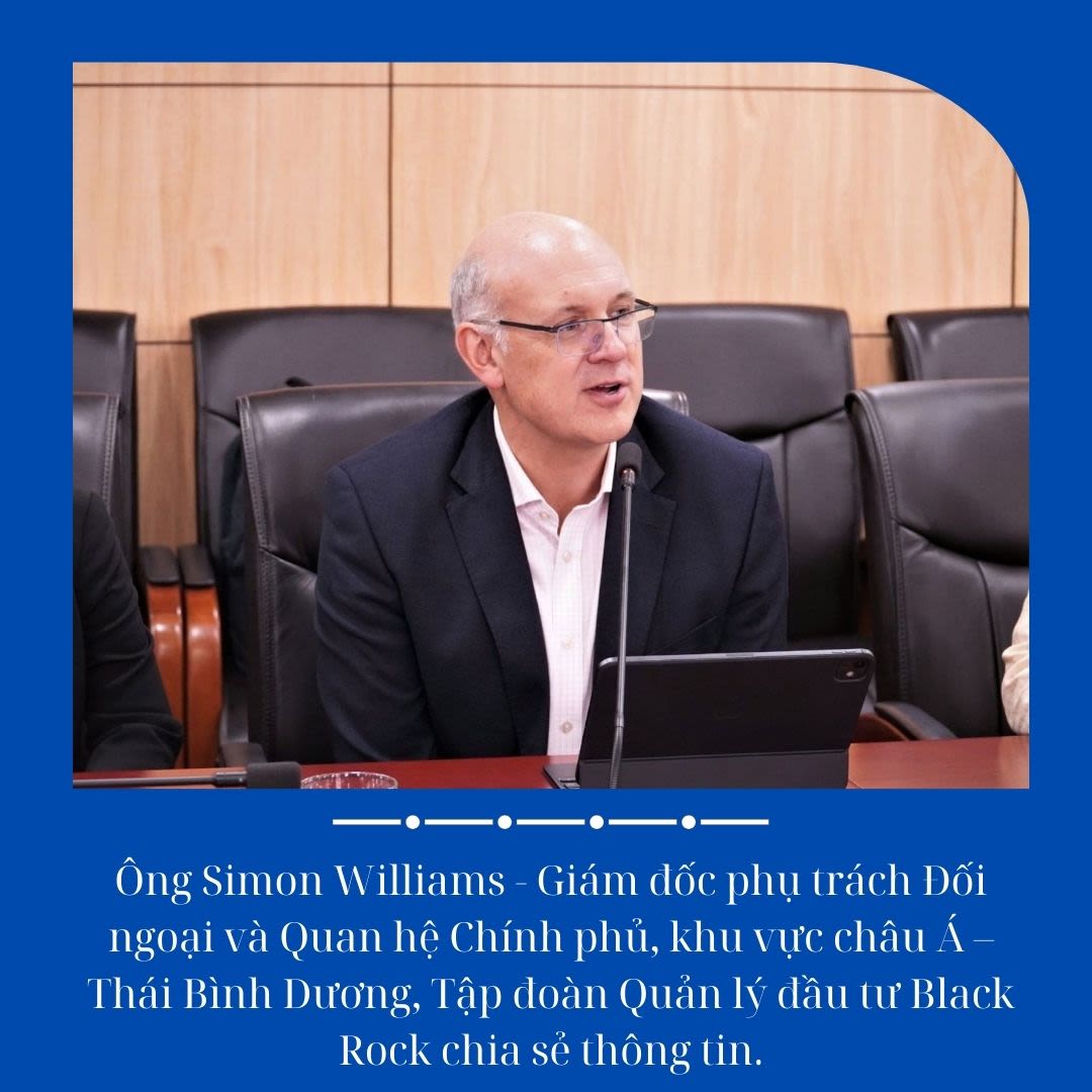 Tại buổi làm việc, ông Simon Williams - Giám đốc phụ trách Đối ngoại và Quan hệ Chính phủ, khu vực châu Á – Thái Bình Dương, Tập đoàn Quản lý đầu tư Black Rock cho biết, trong đợt công tác lần này, bên cạnh việc tiếp xúc với các nhà đầu tư, tổ chức nước ngoài, đoàn công tác của FTSE Russell đã gặp gỡ các thành viên thị trường chứng khoán Việt Nam; qua đó có thêm nhiều thông tin về định hướng phát triển và mong muốn nâng hạng thị trường chứng khoán của Việt Nam.