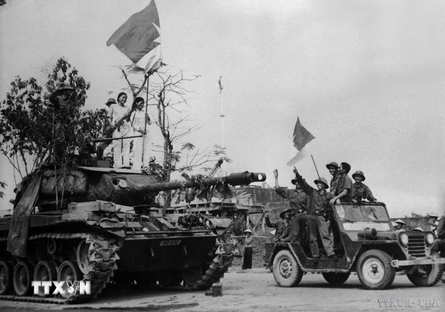 Quân Giải phóng tiến vào cửa Ngọ Môn, phía trước thành nội Huế. Ảnh: Ngọc Đản/TTXVN.