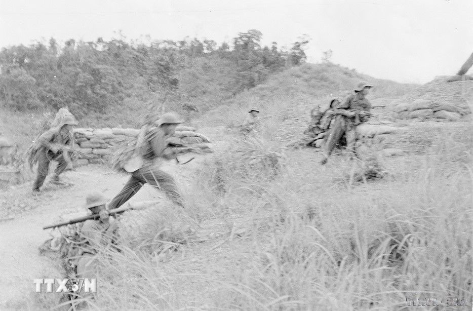 Đại đội 7 Tiểu đoàn 7 Quân Giải phóng Trị - Thiên luyện tập đánh địch trong trận địa kiên cố. Ảnh tư liệu/TTXVN.