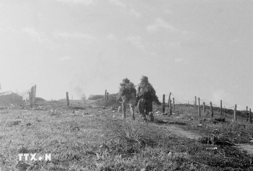 Trong Chiến dịch Tây Bắc, bộ đội được động viên, khích lệ kịp thời, luôn nêu cao tinh thần khắc phục khó khăn, gian khổ, giữ vững bản lĩnh chiến đấu và quyết tâm hoàn thành nhiệm vụ được giao. Trong ảnh: Một trong những vị trí của địch bị quân ta tấn công tiêu diệt trong chiến dịch Tây Bắc 1952.
