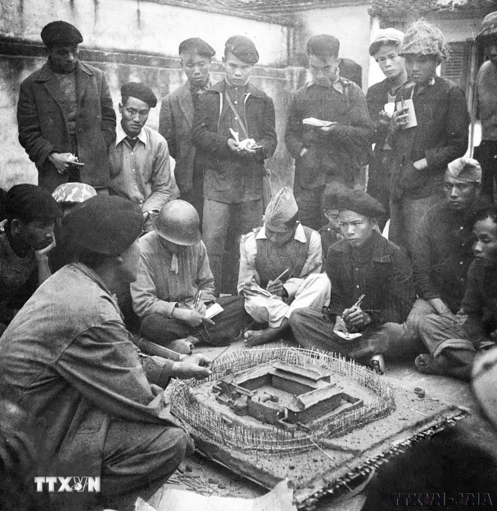 Các đơn vị tham gia chiến dịch nghiên cứu các vị trí đánh địch trên sa bàn trước khi vào chiến dịch.