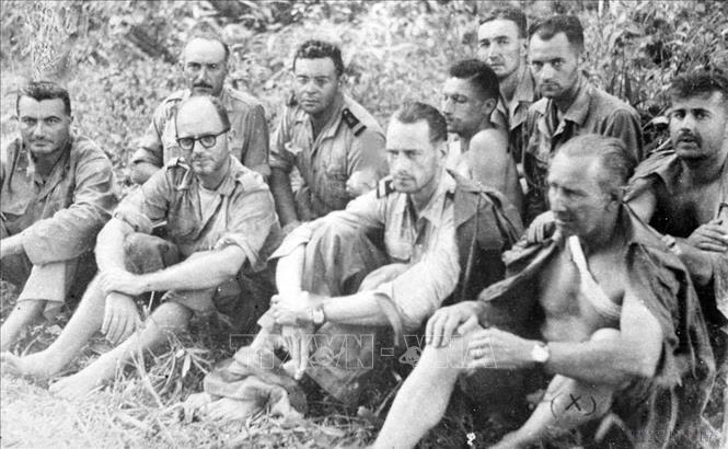 Toàn bộ Ban Chỉ huy phân khu Nghĩa Lộ của địch bị đơn vị của Đại đoàn 312 bắt sống trong trận tấn công ngày 17/10/1952. Ngồi hàng đầu bên phải là quan tư Tirillon, chỉ huy trưởng phân khu Nghĩa Lộ. (Ảnh: TTXVN)