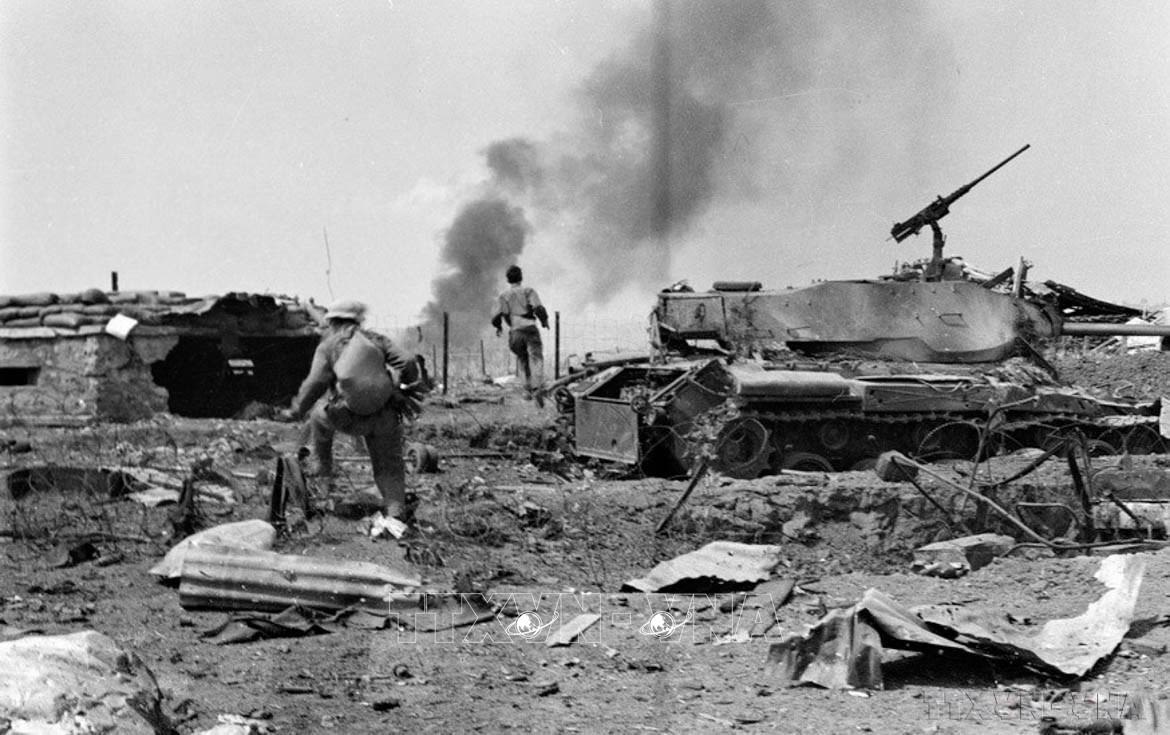 Bộ đội ta giải phóng Đắc Tô-Tân Cảnh (Kon Tum). (Ảnh: TTXVN)
