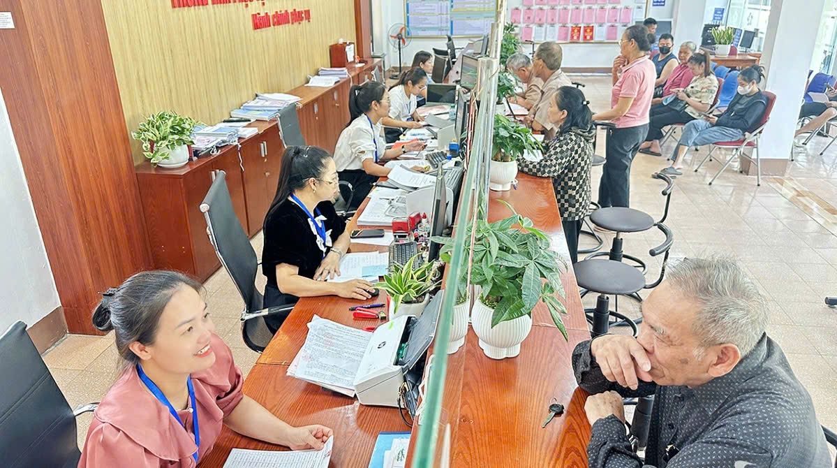 Cán bộ Điểm Phục vụ hành chính công số 1 xã Đại Phúc (tỉnh Thái Nguyên) niềm nở tiếp đón, giải quyết thủ tục hành chính cho người dân. Ảnh: Thế Bình