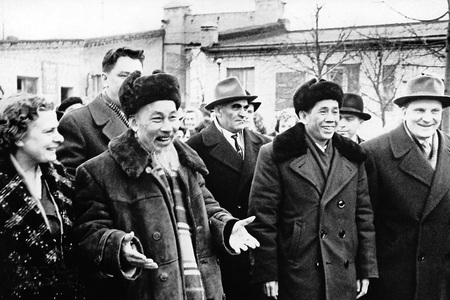 Chủ tịch Hồ Chí Minh cùng Bí thư thứ nhất Lê Duẩn dự Đại hội lần thứ XXII của Đảng Cộng sản Liên Xô, năm 1961. (Ảnh: TTXVN)