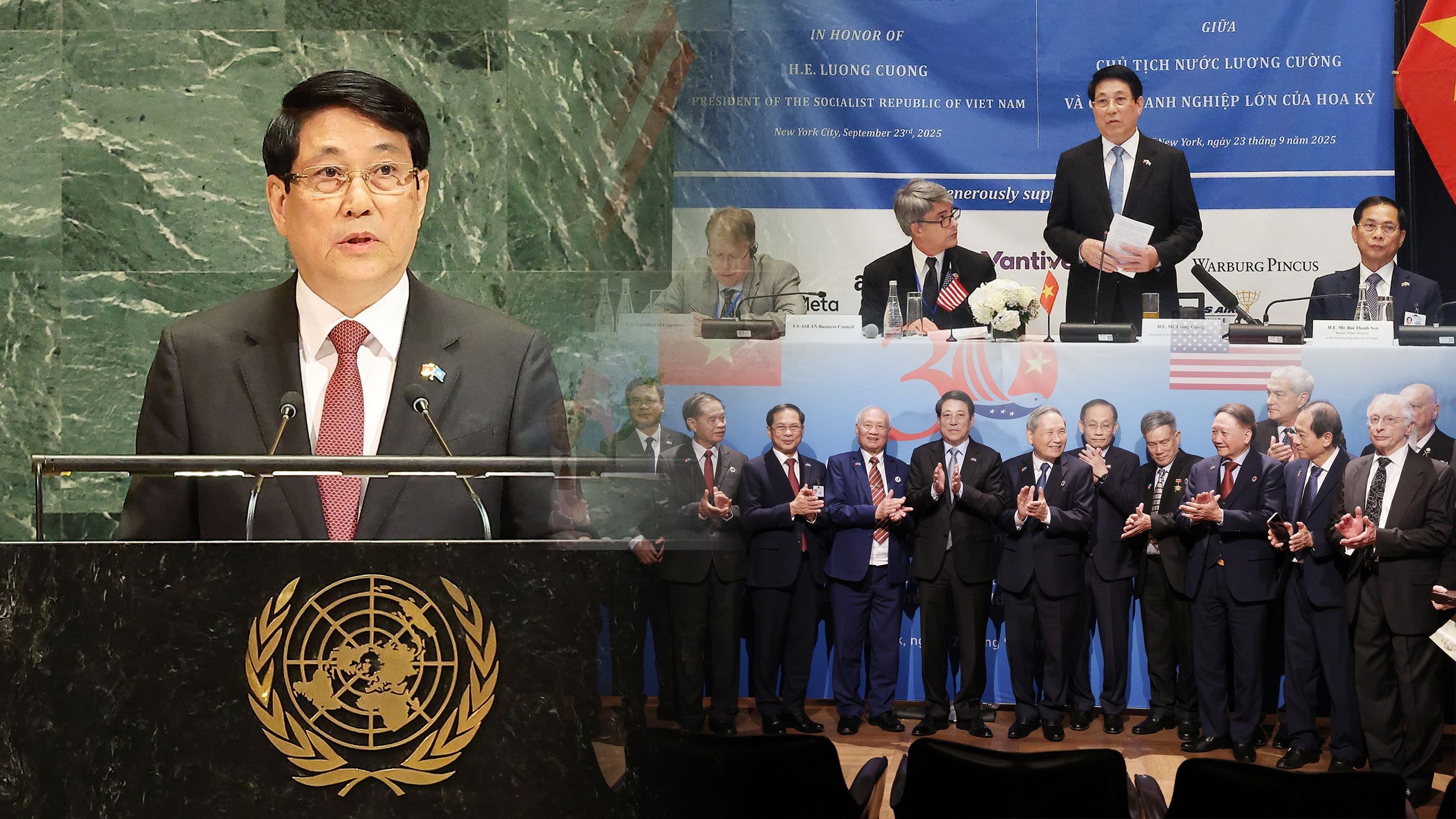 Поездка Президента Лыонг Кыонга на Общие дебаты высокого уровня 80-й сессии Генеральной Ассамблеи ООН стала его первой многосторонней внешнеполитической деятельностью на крупнейшей и важнейшей глобальной площадке, в год 80-летия со дня основания Организации. На протяжении десятилетий, шагая рядом с ООН, Вьетнам оставил глубокий след как все более активный и ответственный член, вносящий практический и весомый вклад во все основные направления деятельности Организации.