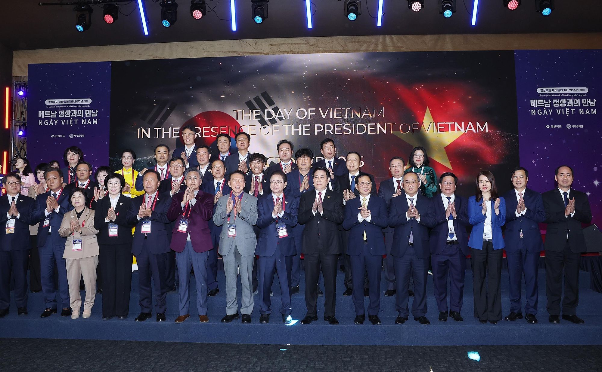 Chủ tịch nước Lương Cường và đoàn đại biểu cấp cao Việt Nam đã dự “Ngày Việt Nam” do tỉnh Gyeongsanbuk, Quỹ Nông thôn mới của Hàn Quốc và Đại sứ quán Việt Nam tại Hàn Quốc phối hợp tổ chức nhân kỷ niệm 20 quốc tế hóa Phong trào Làng mới (Saemaul) của Hàn Quốc.