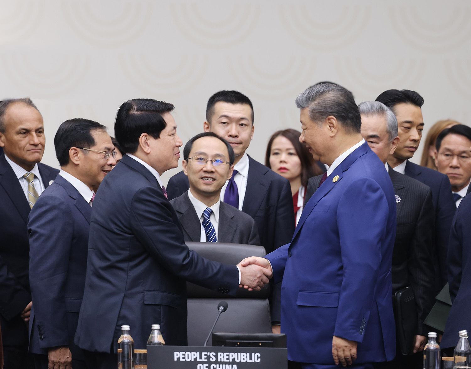 Chủ tịch nước Lương Cường gặp Tổng Bí thư, Chủ tịch Trung Quốc Tập Cận Bình tại Hội nghị các nhà lãnh đạo APEC 2025. (Ảnh: TTXVN)