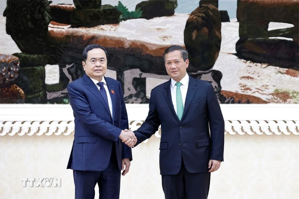 越南国会主席陈青敏与柬埔寨王国首相洪玛奈亲王。(图片来源:越通社)