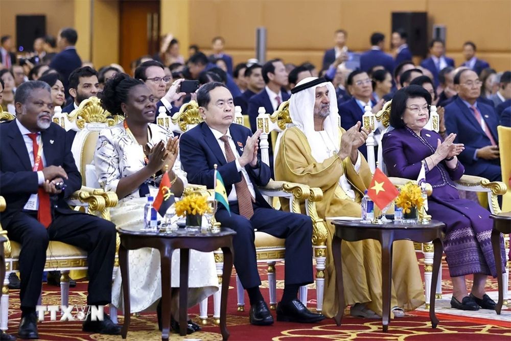 国会主席陈青敏与各位代表出席IPTP 11开幕式。(图片来源:越通社)