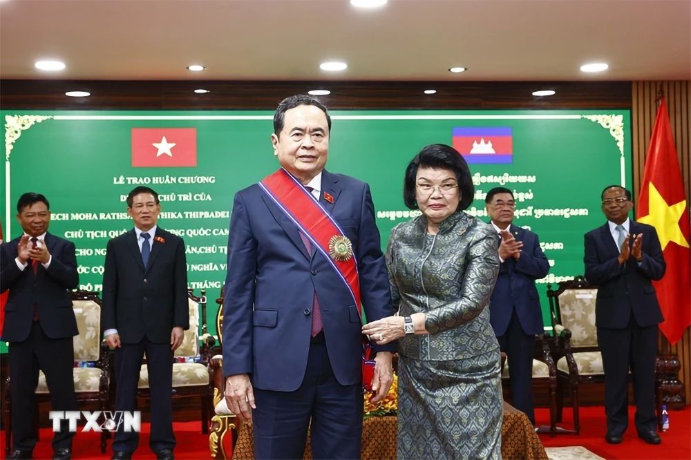 访问期间,越南国会主席陈青敏荣获柬埔寨国会主席昆索达莉授予的柬埔寨王国大十字勋章。