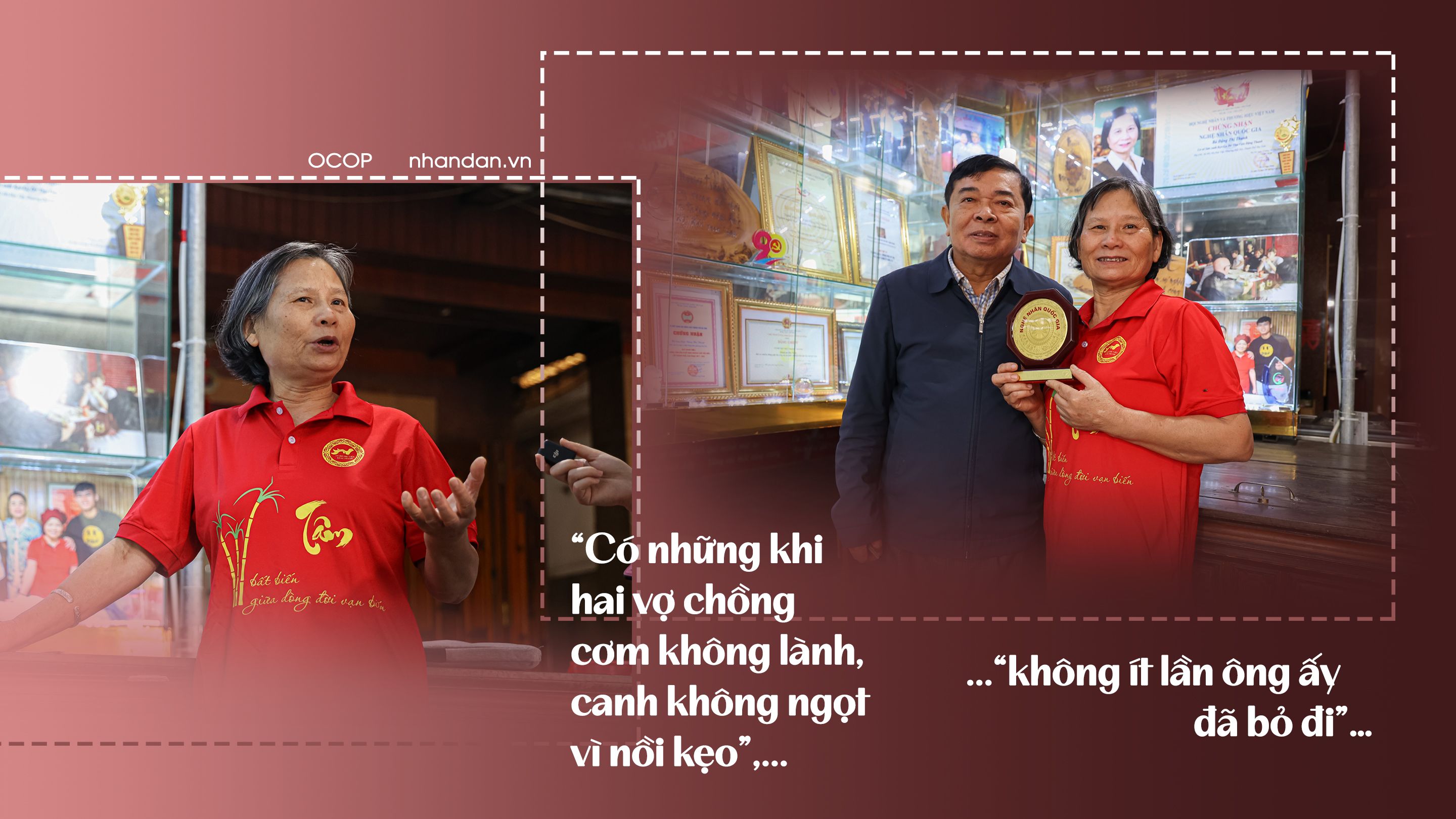 Khi lấy nhau rồi, chồng cô nói: “thuyền theo lái, gái theo chồng”, nếu cô không về, thì ông ấy sẽ ly dị. Nhưng với cô khi ấy, làm kẹo không phải vì thu nhập, mà đã trở thành “đam mê” rồi, không có lý do gì có thể khiến cô từ bỏ công việc này. Sóng gió nhiều khi cũng bắt đầu từ đó và không ít lần chồng cô đã bỏ đi, hai vợ chồng “cơm không lành, canh không ngọt”. Rất may mắn, sau đó cô cũng nhận được sự cảm thông của người bạn đời, từ chỗ không tán thành việc vợ làm kẹo, chồng cô đã hỗ trợ tìm hiểu về công nghệ, chung tay nghiên cứu cho ra sản phẩm chất lượng. Còn cô, ru con ngủ xong lại lặng lẽ nửa đêm nuôi đam mê bên bếp củi, nồi kẹo…