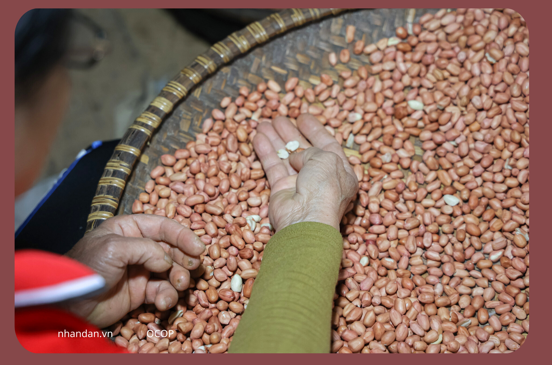 Nguyên liệu mà cơ sở chọn mua là những hạt lạc được tách bằng tay, vì nếu tuốt bằng máy, hạt lạc có thể bị rạn nứt bên trong, rất khó quan sát bằng mắt khi hạt lạc được bao bởi lớp vỏ màu đỏ rất dai.
