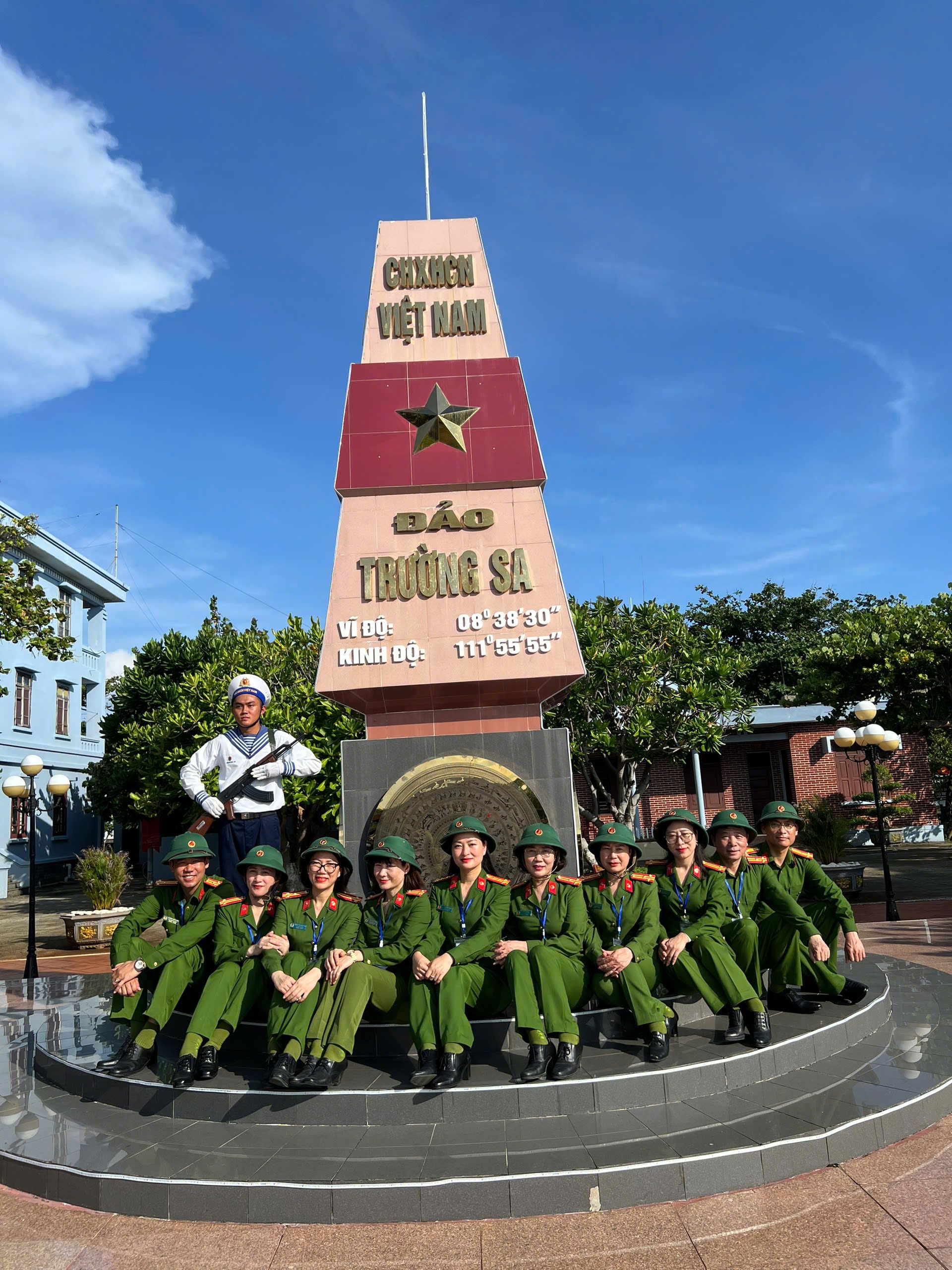 Đại tá TS Đồng Thị Hồng Nhung, Phó Hiệu trưởng Trường Cao đẳng CSND I cùng đoàn công tác chụp ảnh lưu niệm tại Đảo Trường Sa (năm 2025)