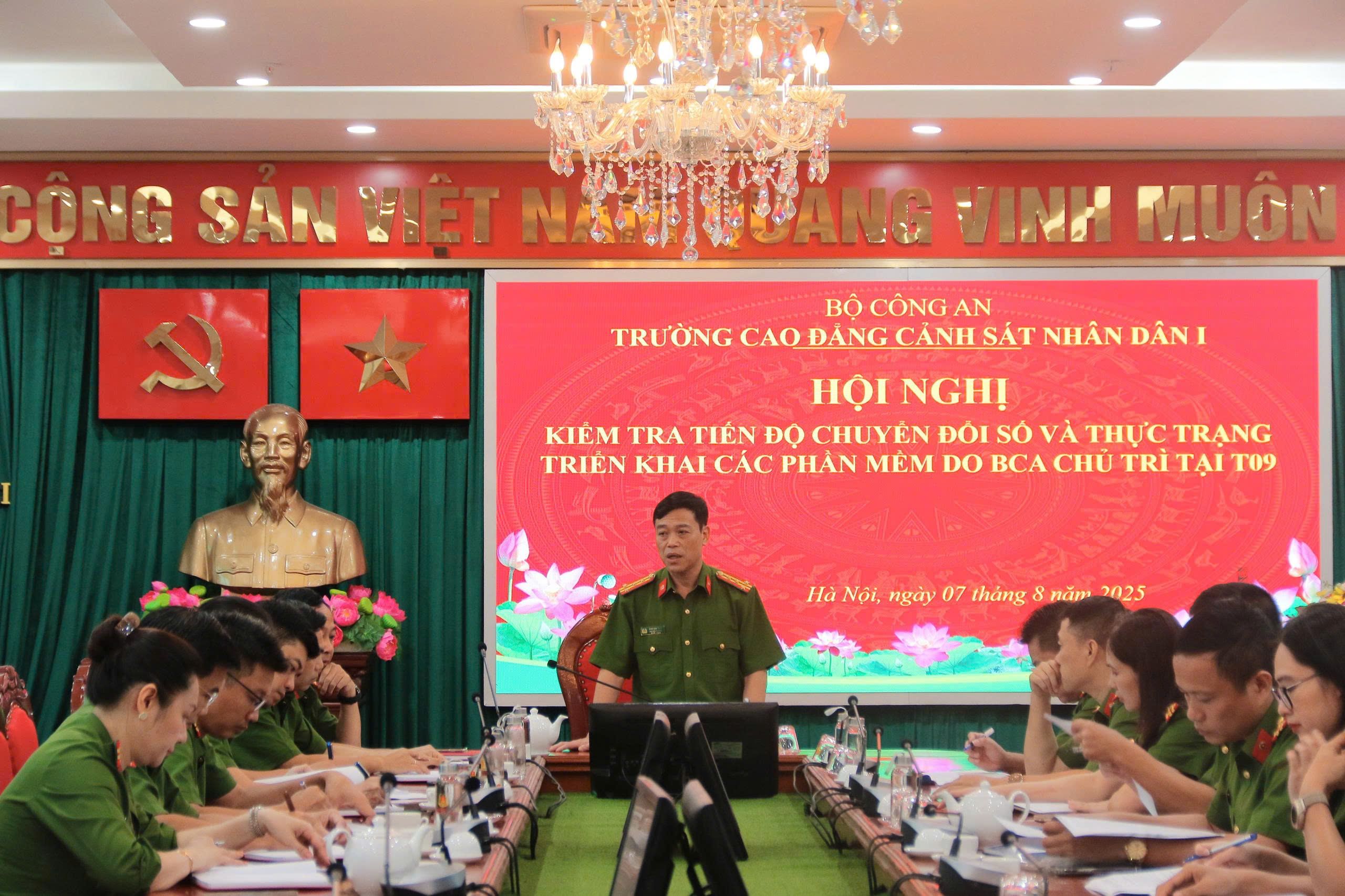 Nhận thức tầm quan trọng của công tác chuyển đổi số, Đảng uỷ, Ban Giám hiệu Trường Cao đẳng CSND I đã chỉ đạo tiến hành công tác chuyển đổi số trong thực hiện nhiệm vụ chính trị. Căn cứ các quyết định của Bộ Công an về phê duyệt chương trình chuyển đổi số trong Công an nhân dân (CAND) đến năm 2025, định hướng 2030, Trường Cao đẳng CSND I đã ban hành kế hoạch hoạt động chuyển đổi số đến năm 2025, định hướng 2030 của nhà trường. Trong đó đã xác định những mục tiêu cụ thể như: Xây dựng, hoàn thiện các quy định về chuyển đổi số trong nhà trường; xây dựng hệ thống thông tin phục vụ công tác quản lý điều hành trong nội bộ; số hóa hồ sơ, tài liệu và kết nối, chia sử phục vụ chuyển đổi số; đảm bảo an ninh, an toàn các hệ thống thông tin; bảo đảm nguồn lực về chuyển đổi số.