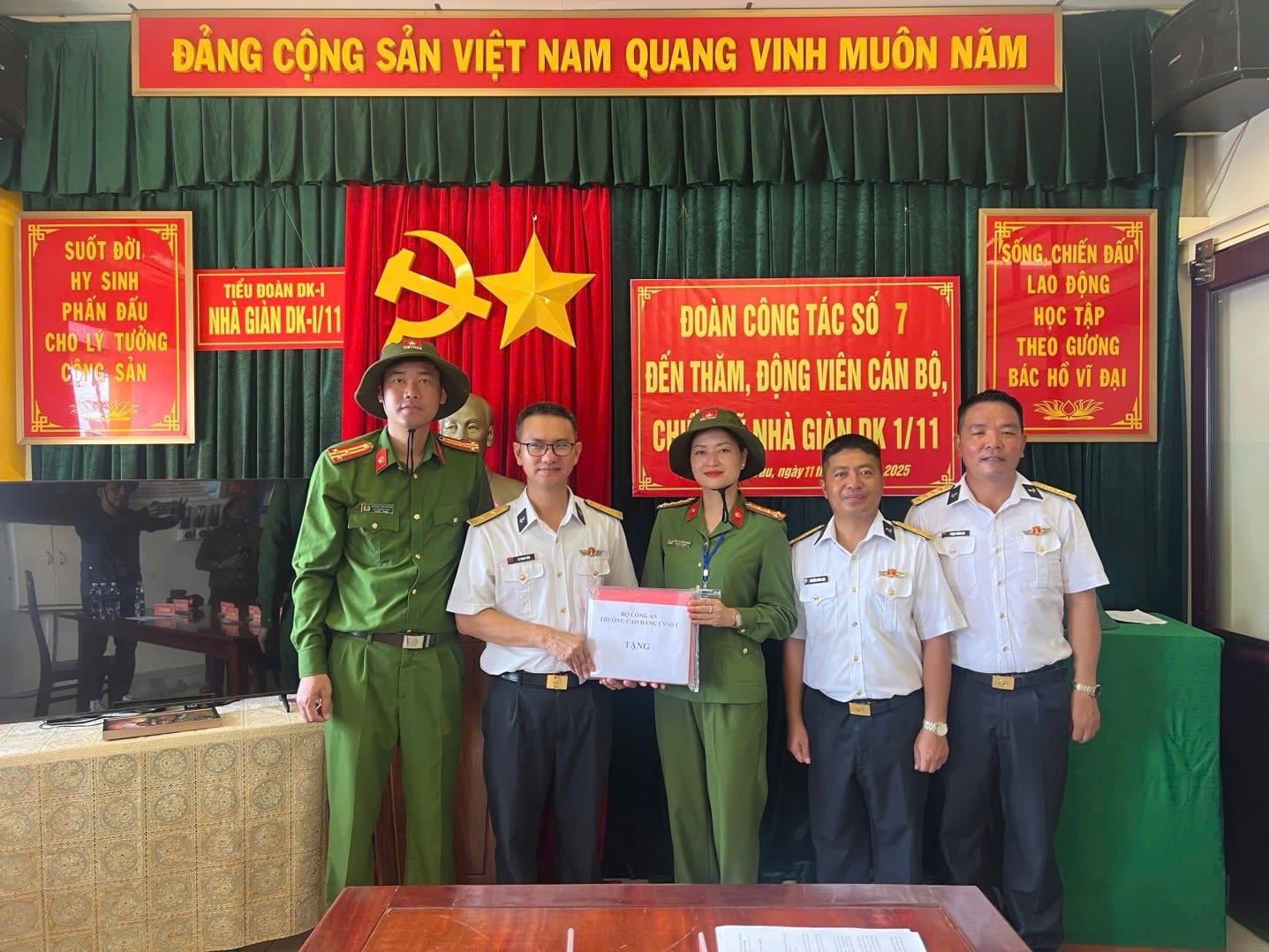 Đại tá, TS Đồng Thị Hồng Nhung, Phó Hiệu trưởng Trường Cao đẳng CSND I Tặng quà cho cán bộ, chiến sĩ Nhà giàn DK1/11 (năm 2025)