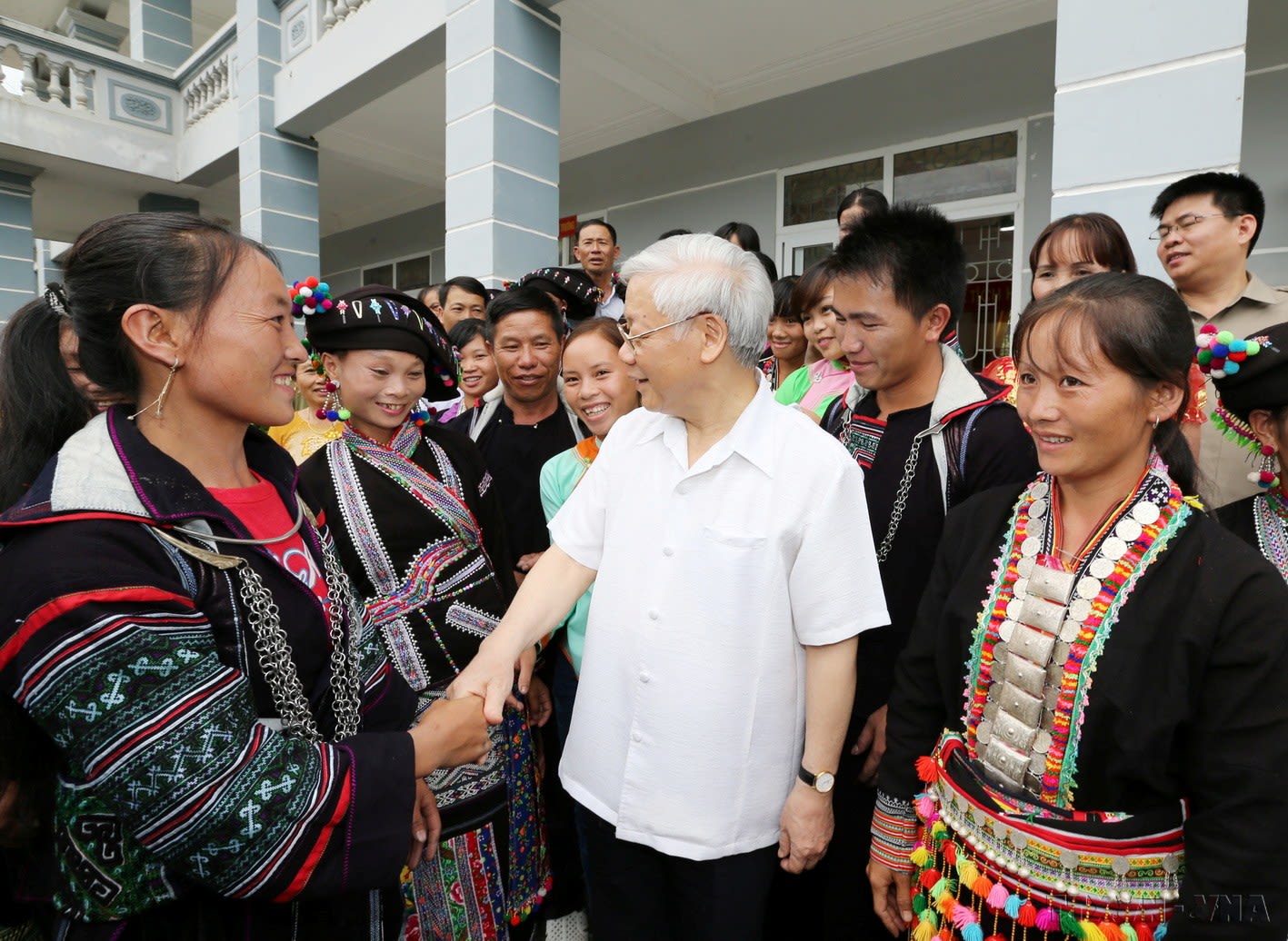 Tổng Bí thư Nguyễn Phú Trọng  với đồng bào dân tộc xã nông thôn mới Bản Bo, huyện Tam Đường, tỉnh Lai Châu. Ảnh: Trí Dũng-TTXVN