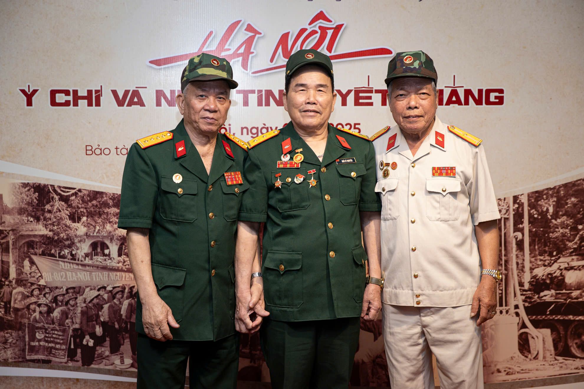 Ba thành viên còn lại của kíp xe tăng 390 góp mặt trong một chương trình kỷ niệm 50 năm Ngày Giải phóng miền nam, thống nhất đất nước tại Hà Nội vào tháng 4/2025. Từ trái sang: các ông Vũ Đăng Toàn, Ngô Sỹ Nguyên, Nguyễn Văn Tập (Ảnh SƠN TÙNG)