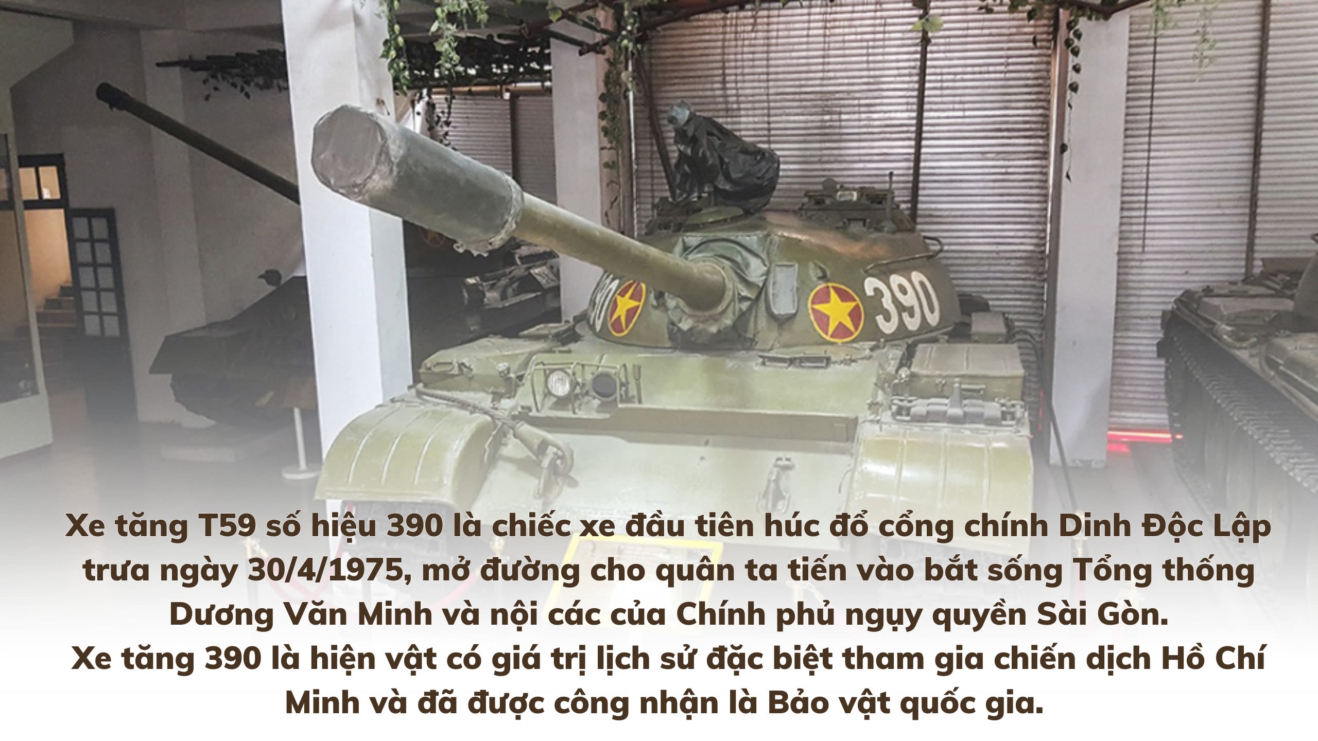Ngày 30/4/1975, xe tăng mang số hiệu 390 của Lữ đoàn 203, Quân đoàn 2, đã húc đổ cánh cổng chính của Dinh Độc Lập, đánh dấu sự sụp đổ hoàn toàn của chính quyền Sài Gòn. Cùng với xe tăng số hiệu 843 cũng của Lữ đoàn 203, đây là hai chiếc xe tăng huyền thoại đã đi vào lịch sử của Chiến dịch Hồ Chí Minh, trở thành một trong những biểu tượng của chiến thắng trong hàng triệu trái tim người Việt Nam.