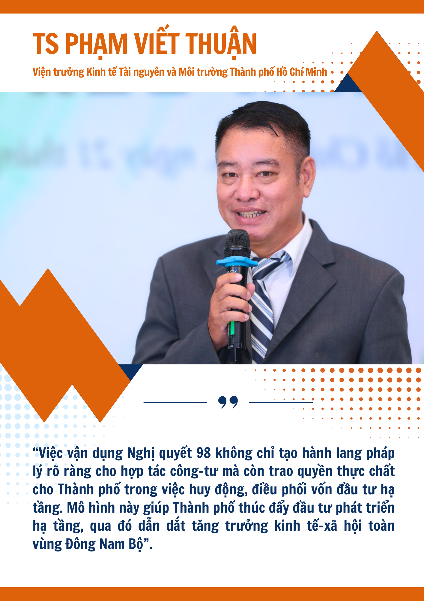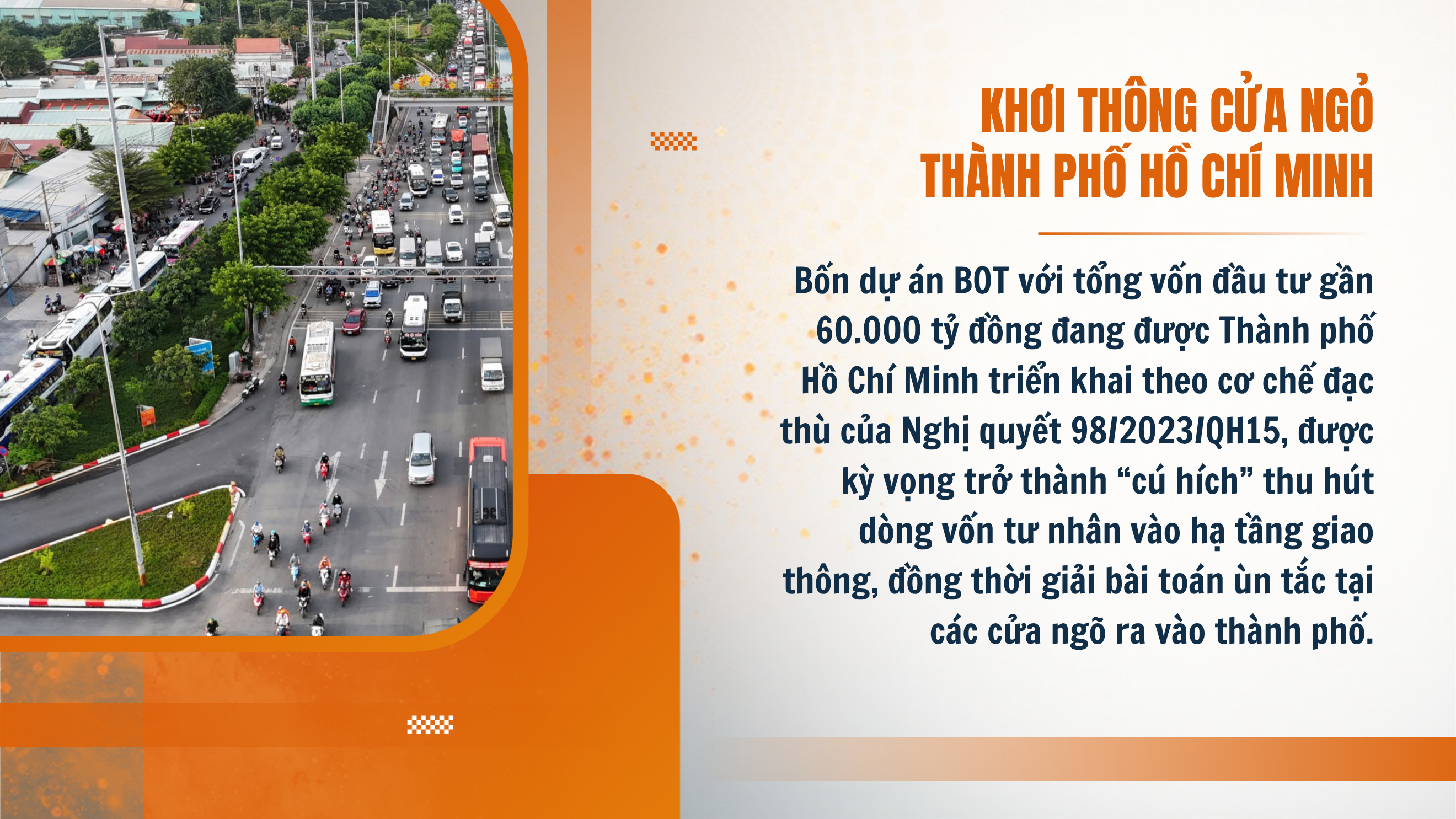 Bốn dự án BOT được Thành phố Hồ Chí Minh lựa chọn đều là dự án đầu tư, cải tạo hạ tầng giao thông trọng điểm. Việc vận dụng Nghị quyết 98 đồng thời thực hiện theo mô hình chính quyền địa phương hai cấp, với mục tiêu cụ thể, tăng tốc tiến độ: khởi công dự án vào năm 2026 và hoàn thành vào năm 2028.