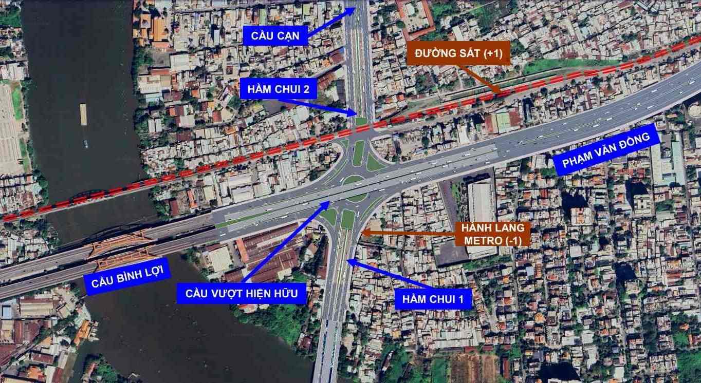 Nút giao Bình Lợi, dự án mở rộng Quốc lộ 13 sẽ làm hầm chui 2 chiều để giảm kẹt xe.