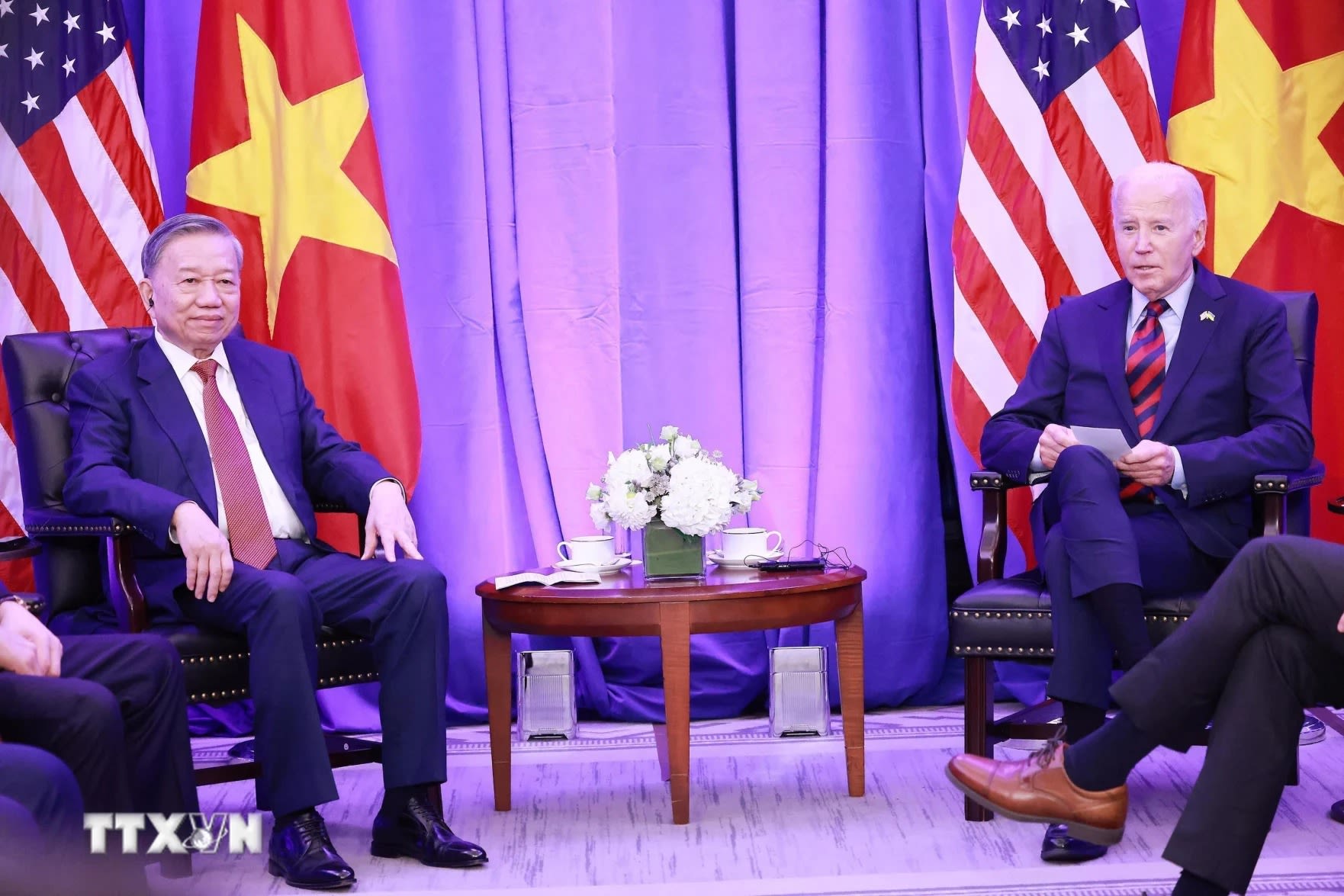 Tổng Bí thư, Chủ tịch nước Tô Lâm gặp Tổng thống Hoa Kỳ Joe Biden. Ảnh: TTXVN