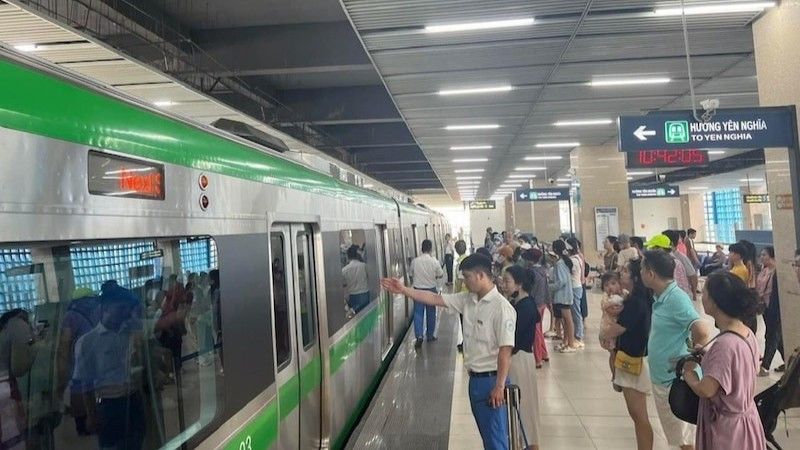 Hành khác chờ lên tàu Cát Linh-Hà Đông. (Ảnh: Báo Nhân Dân)