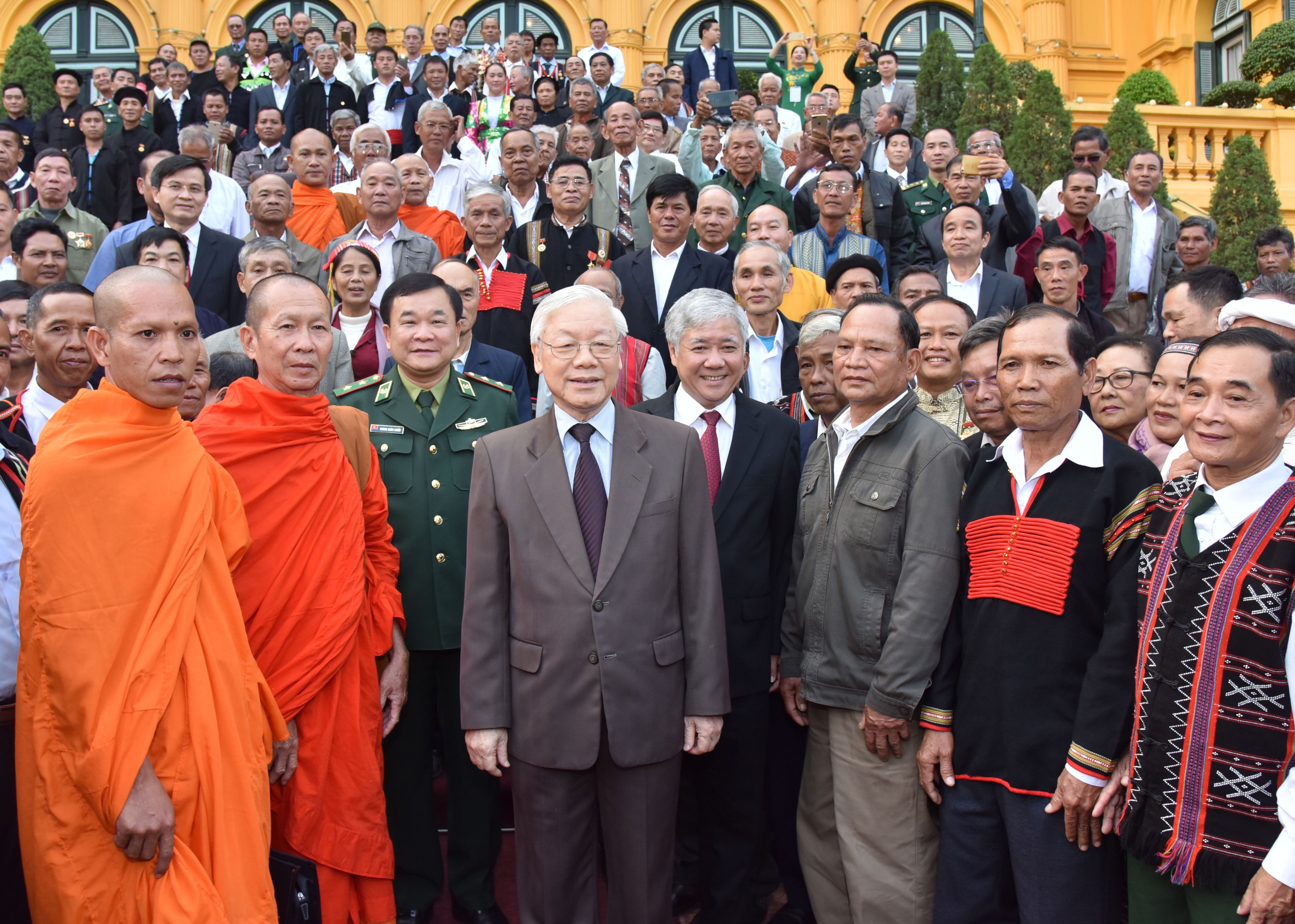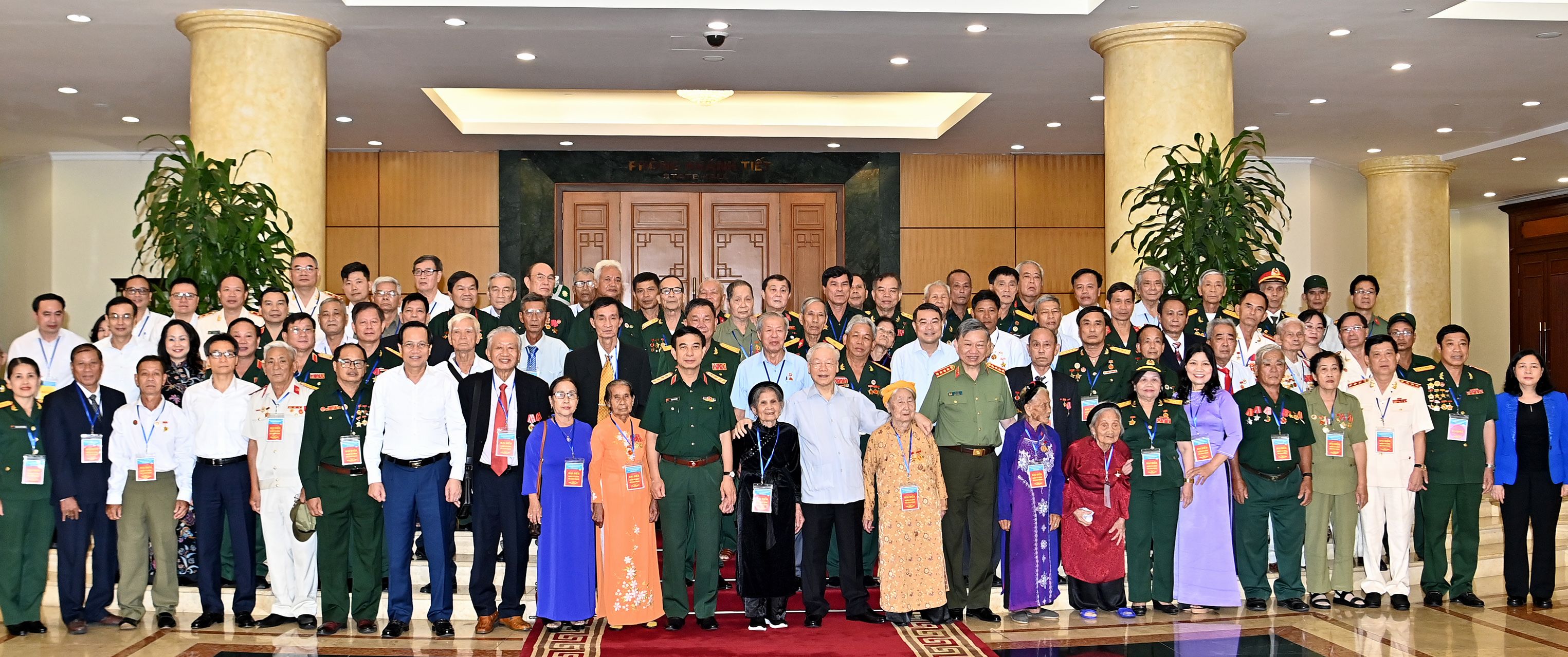Tổng Bí thư Nguyễn Phú Trọng với Đoàn đại biểu người có công với cách mạng tiêu biểu toàn quốc năm 2022. Ảnh: ĐĂNG KHOA