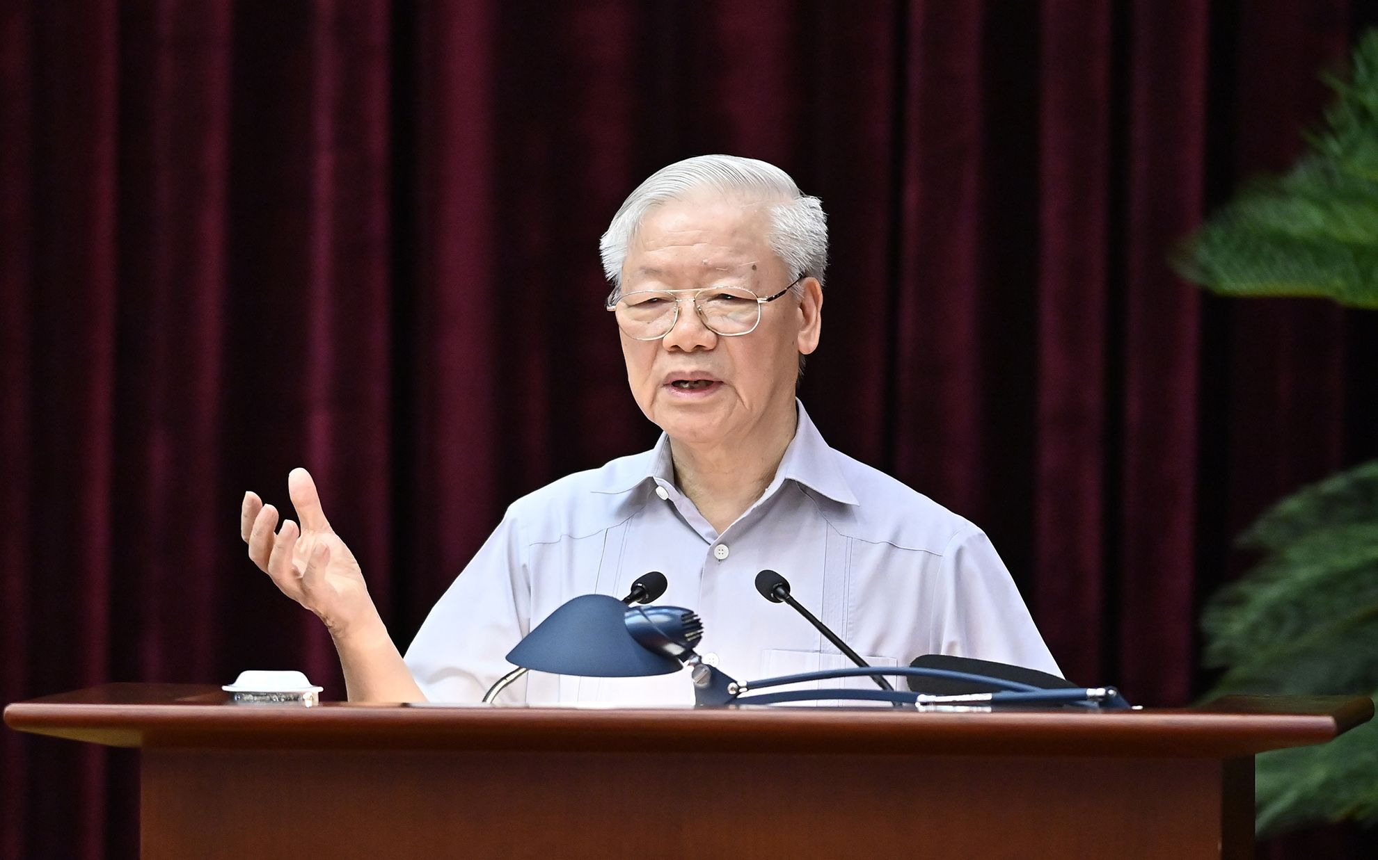 Tổng Bí thư Nguyễn Phú Trọng phát biểu tại Hội nghị tổng kết 10 năm công tác phòng, chống tham nhũng, tiêu cực giai đoạn 2012 - 2022, ngày 30-6-2022. Ảnh Đăng Khoa